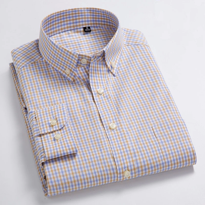 New Arrival Men’s Oxford Wash and Wear Plaid Shirts 100% Cotton Casual Shirts High Quality Fashion Design Men’s Dress Shirts