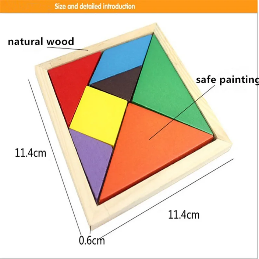 New Children Mental Development Tangram Wooden Jigsaw Puzzle Educational Toys for Kids Brain Teaser Games Free Shipping