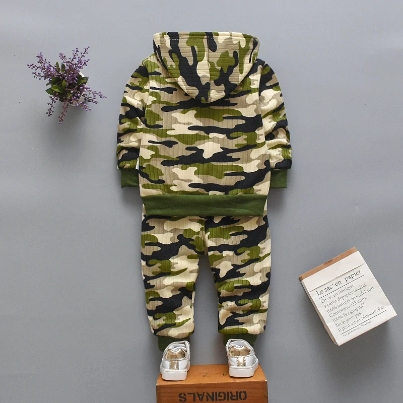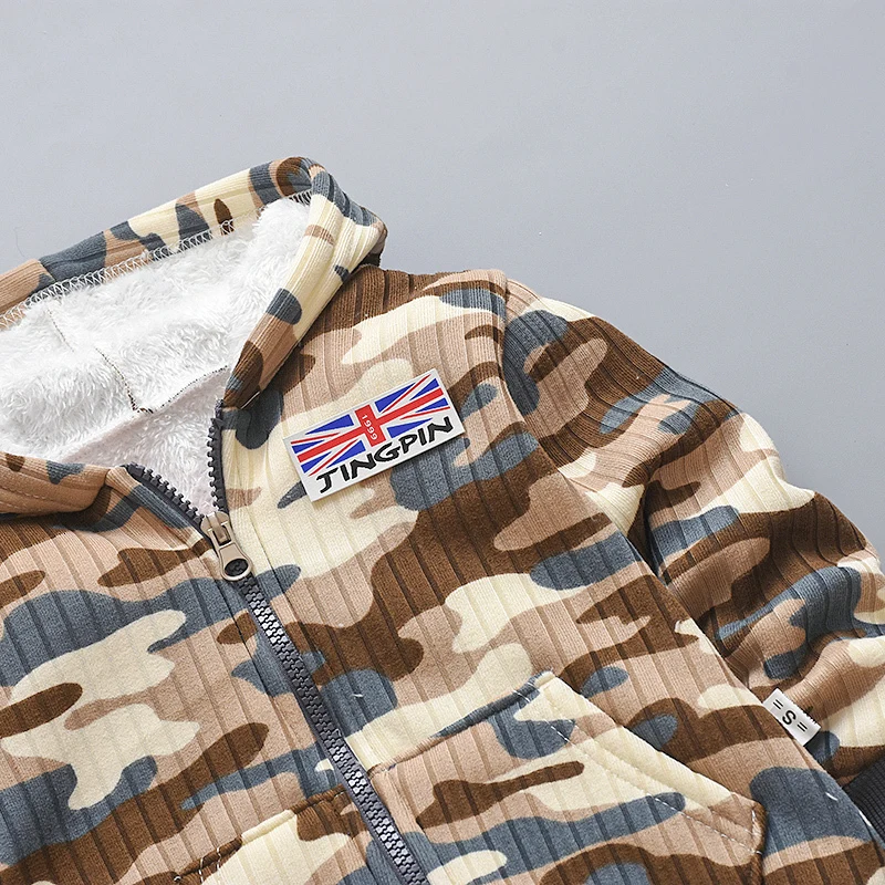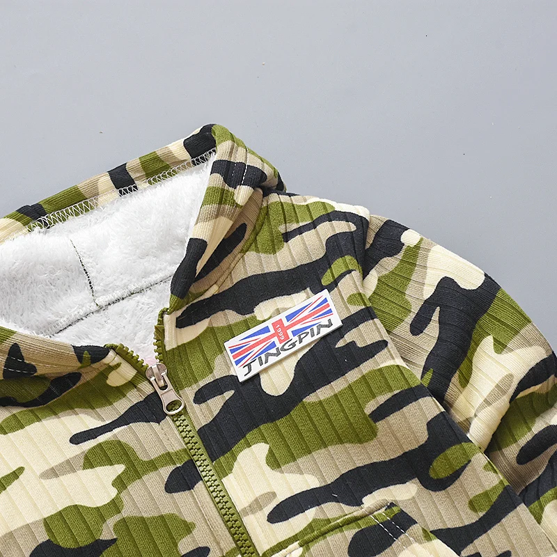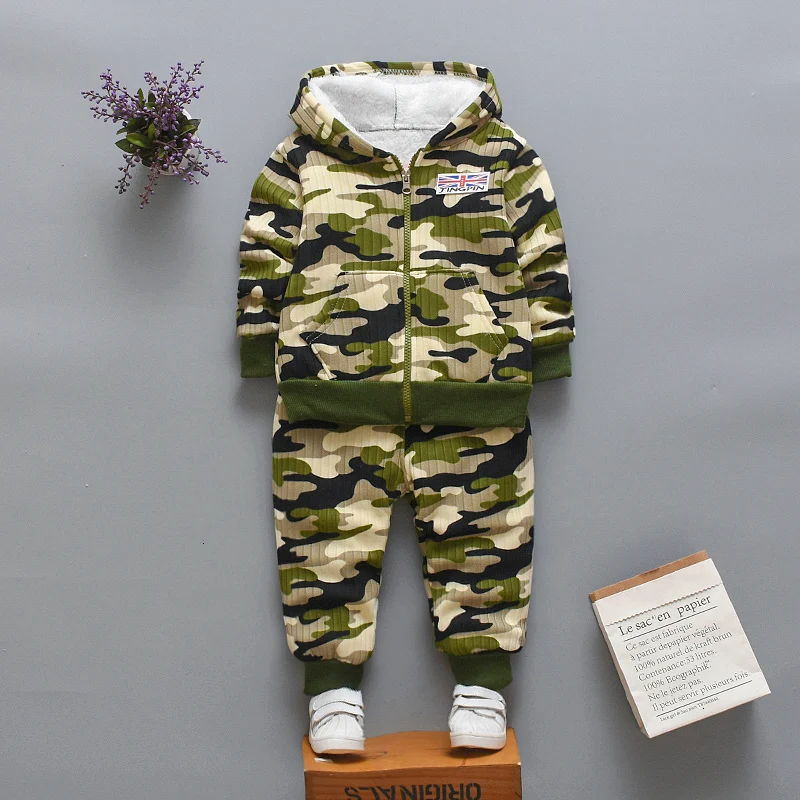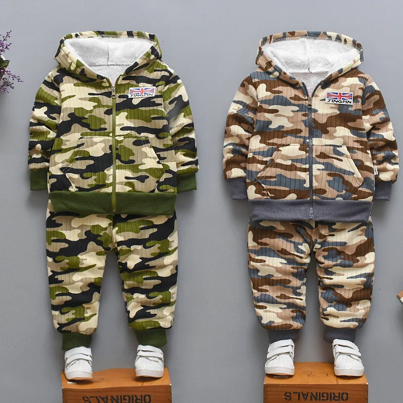 New Children Warm Fleece Baby Boys Clothing Sets Autumn Winter Toddler Long Sleeve 2pcs Clothes Suits Camouflage Kids Tracksuits
