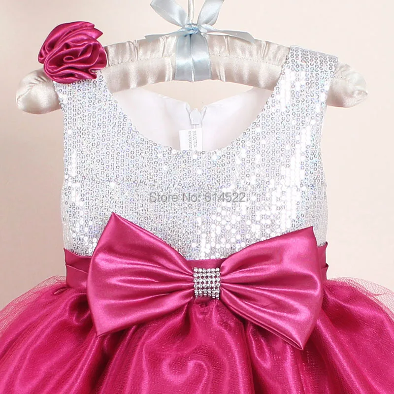 New Christmas Flower Girl Dresses Hot Red Sequin Big Bow Baby Party Dress for wedding vestidos infantis 0-4 years