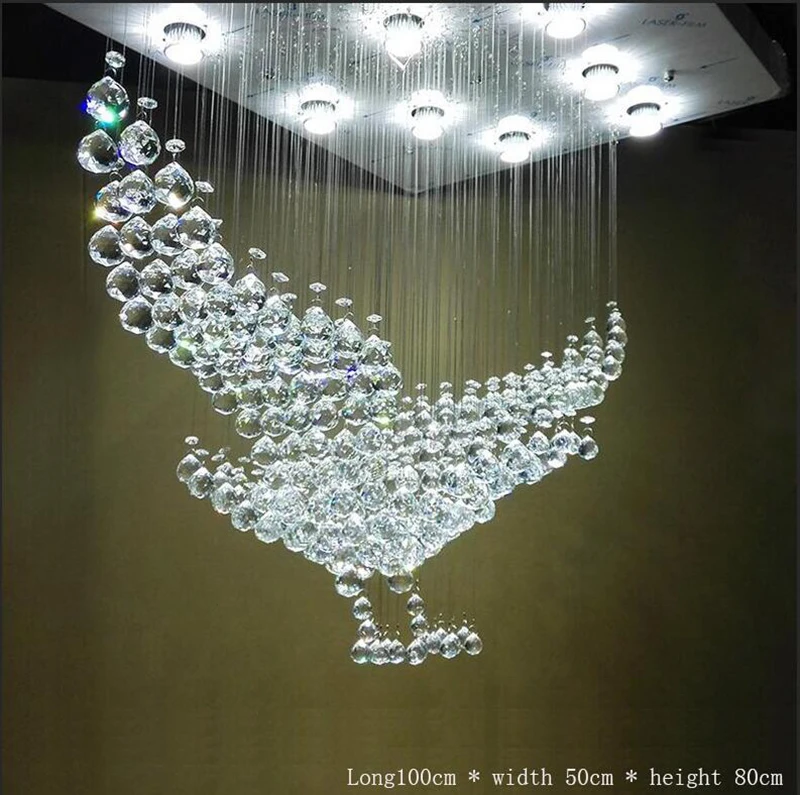 New Eagles Luxury Design Living Room LED Lights Crystal Lamp Crystal Chandelier Modern Lighting Luster L100*W55*H80cm 110 v-220v