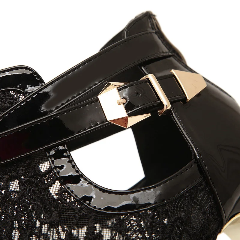 New Fashion Women High Heels White Lace Flowers Ladies Summer Shoes Buckle Strap Peep Toe Women Shoes Cut-out Zip Women Heels