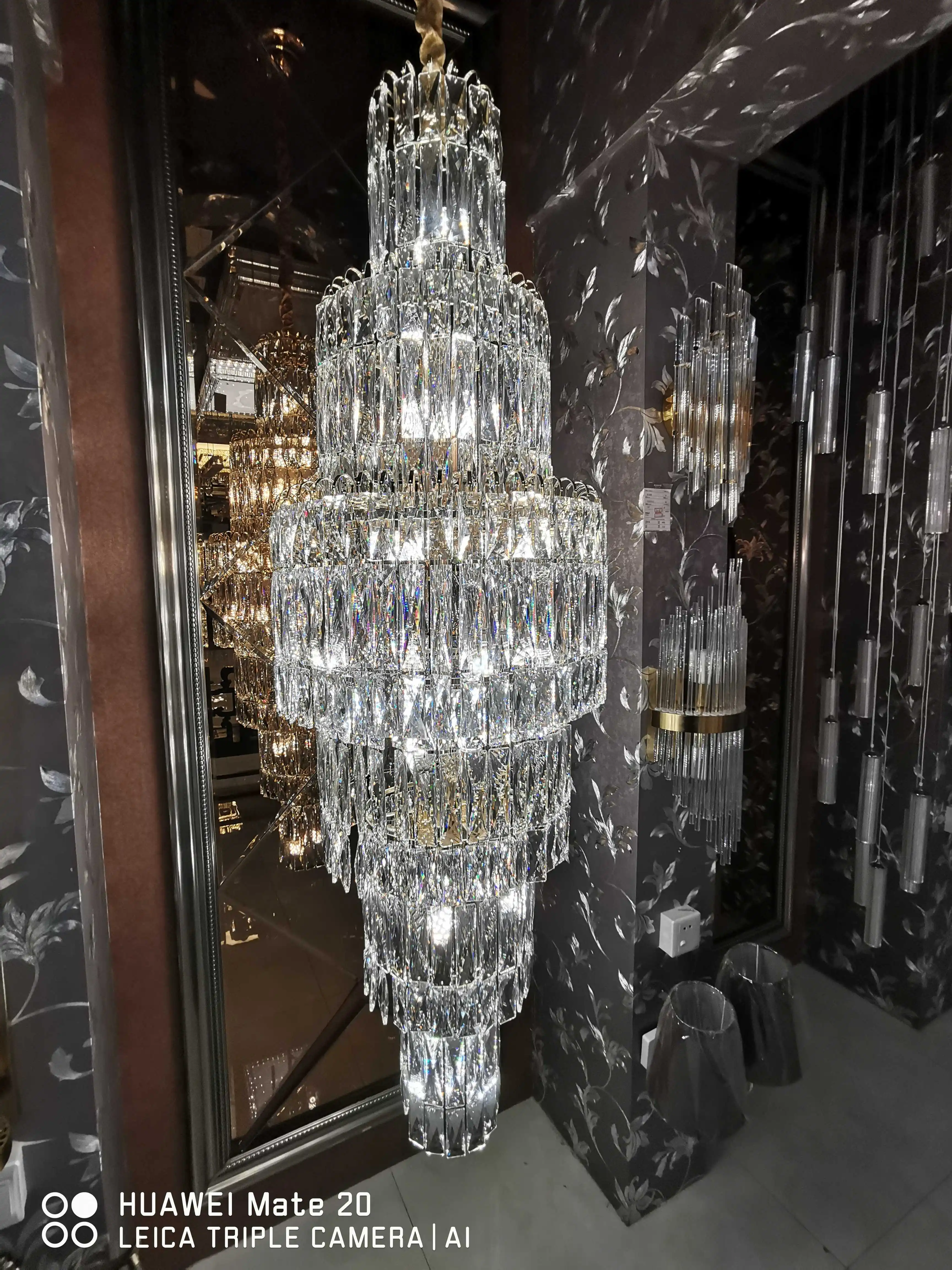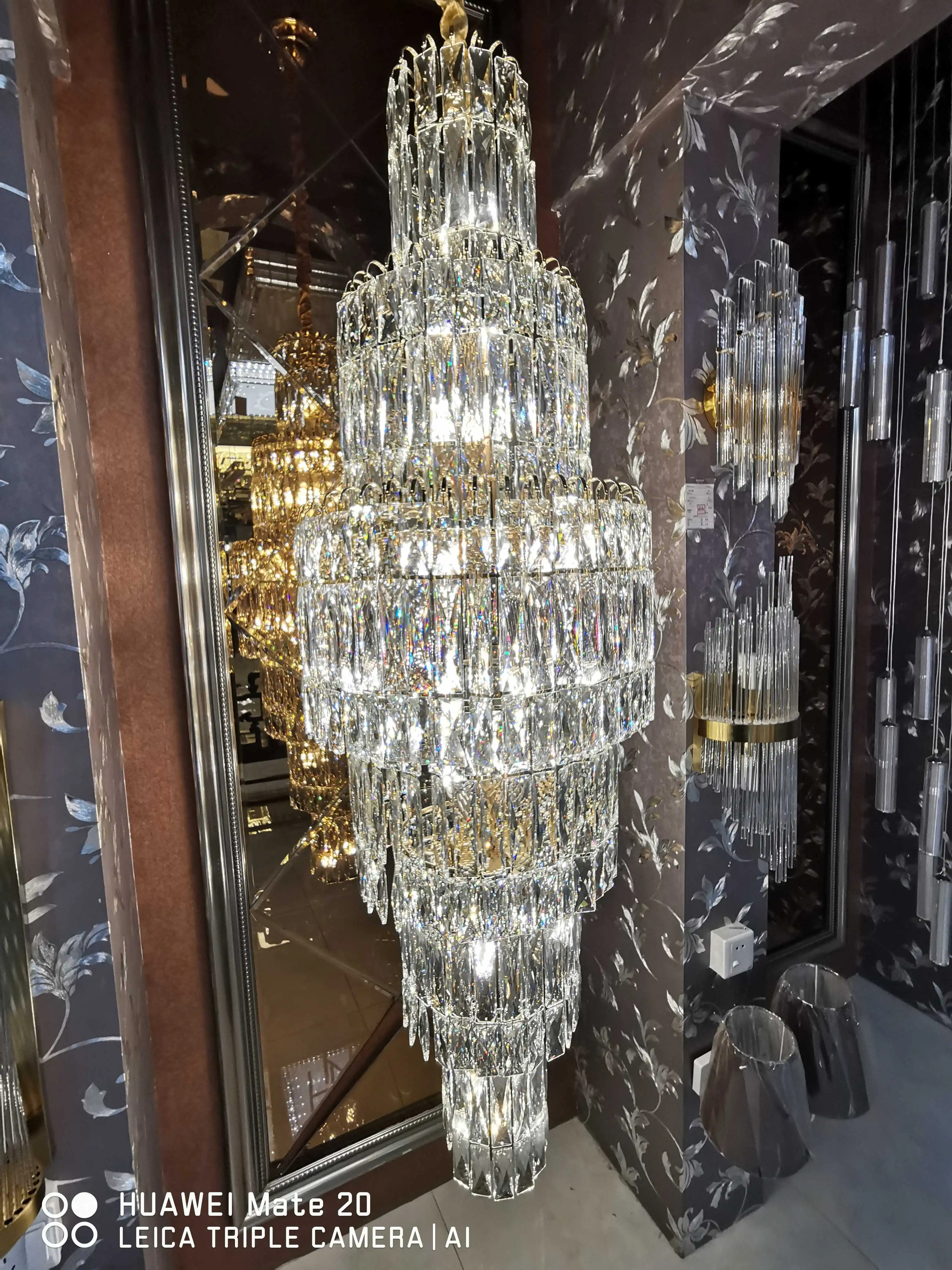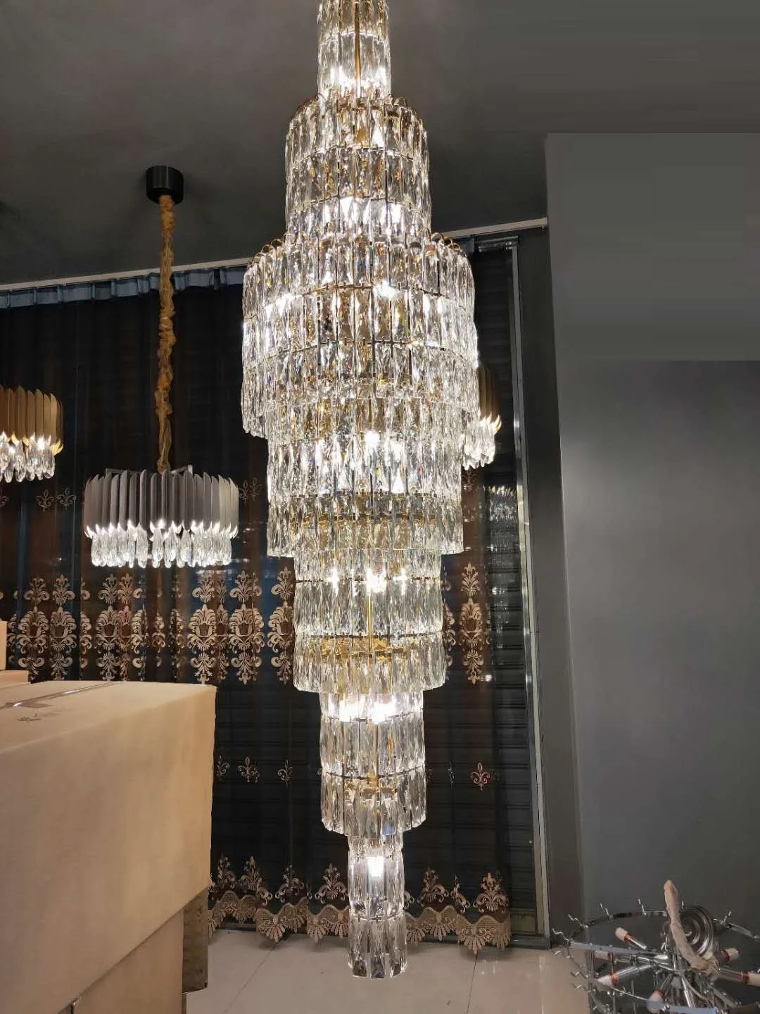 New luxury k9 crystal chandelier long staircase lamp duplex living room hotel lobby decoration chandelier LED lights