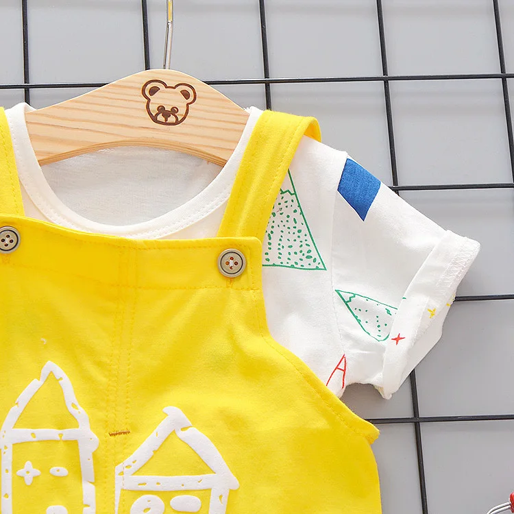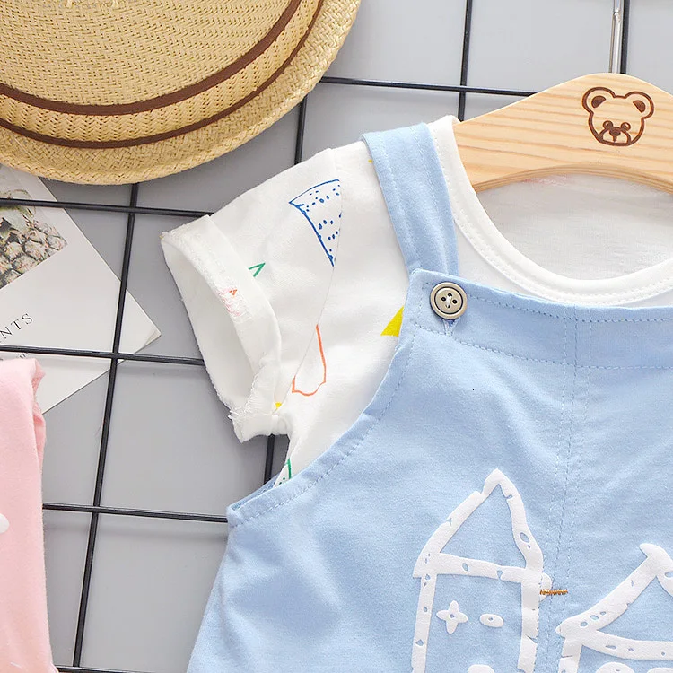 New Summer Baby Boys Clothes Children Girls Cotton Cartoon T Shirt Overalls 2Pcs/sets Toddler Fashion Clothing Kids Tracksuits For 0-4 Years