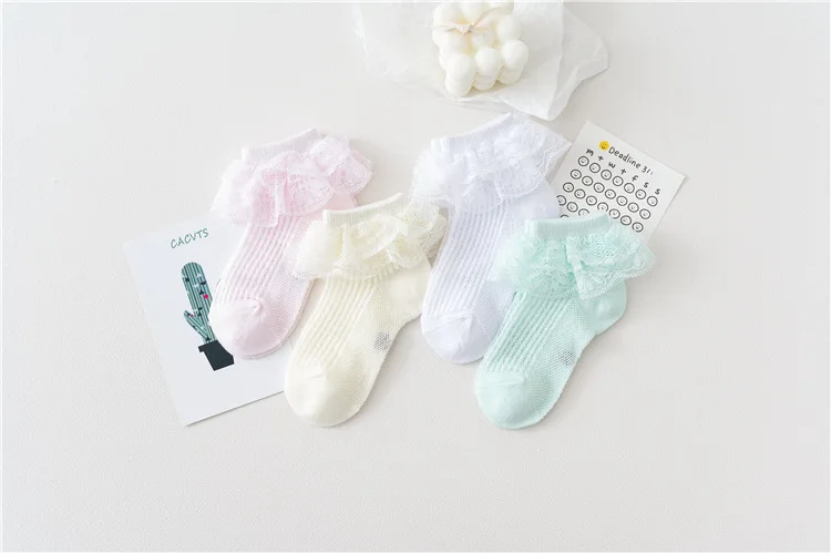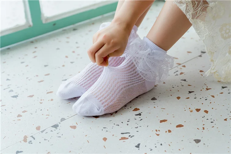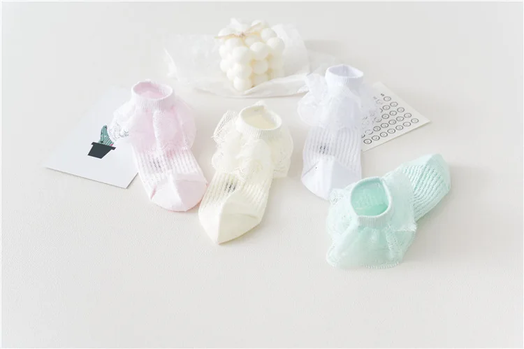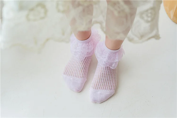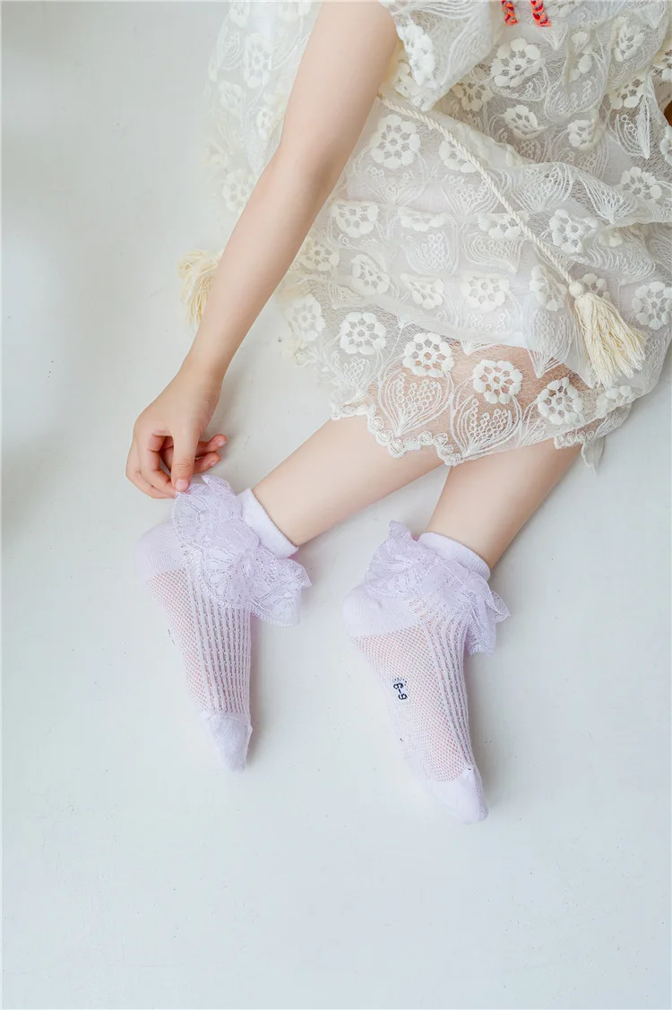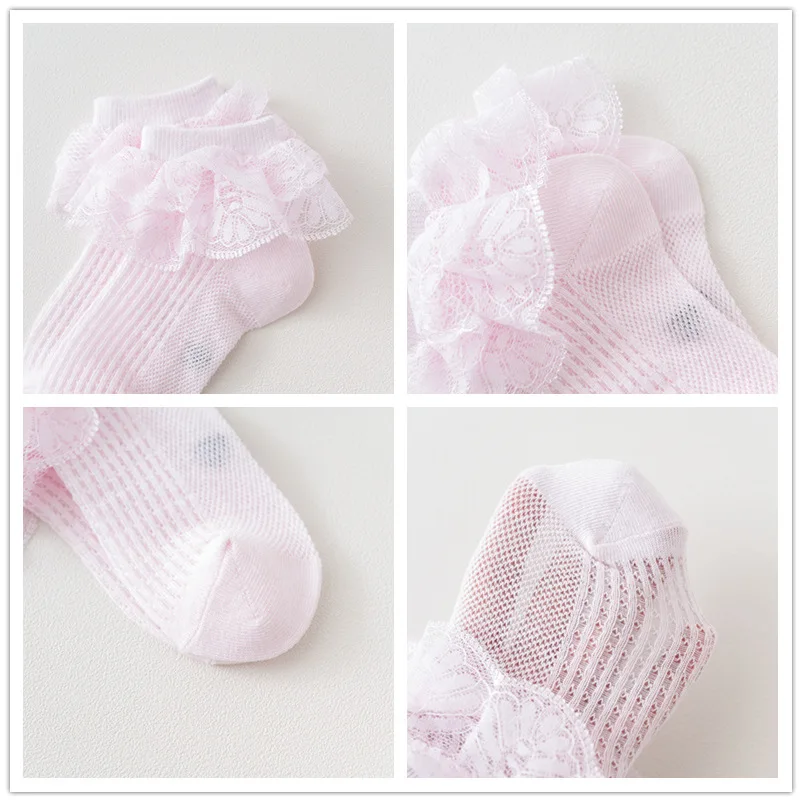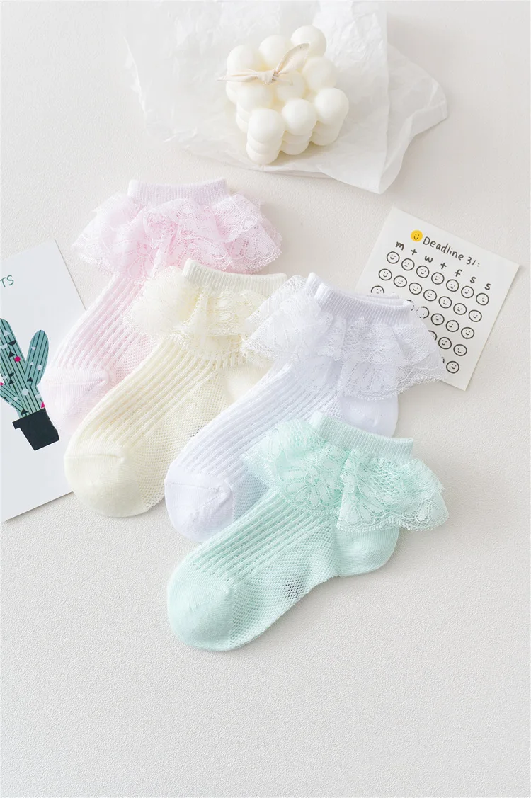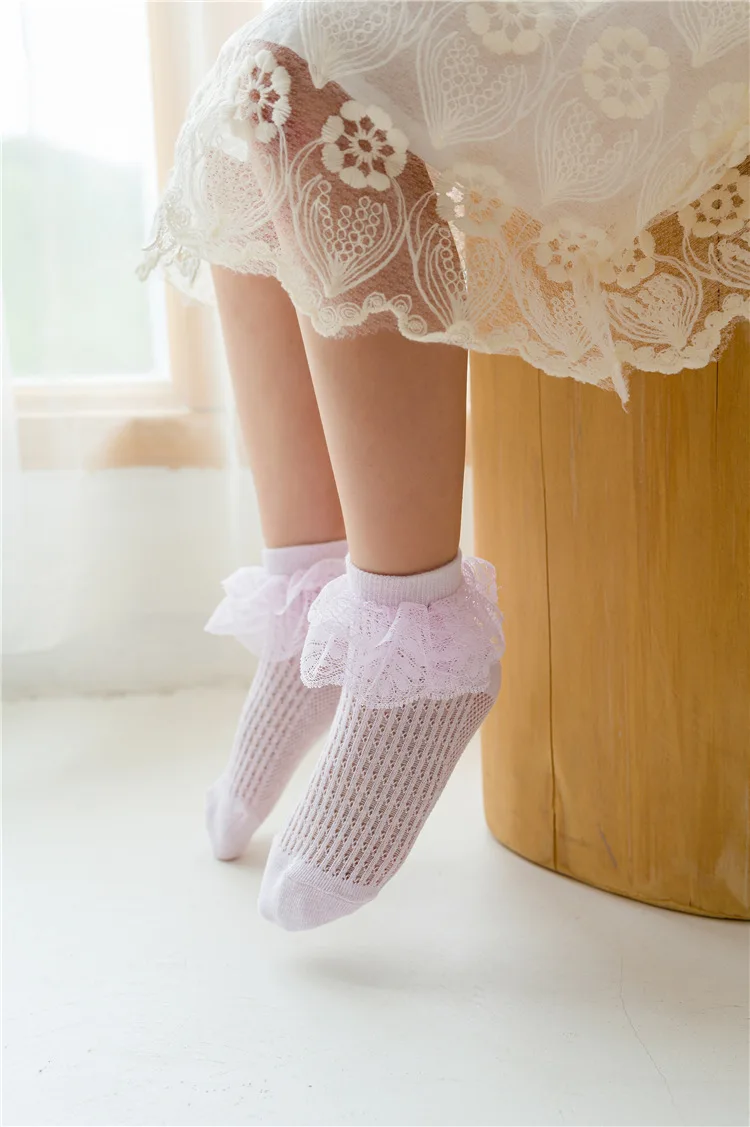 New Summer Baby Girls Kids Mesh Socks Fashion Lace Ruffle Frilly Flower Cotton Short Sock Breathable Princess Baby Girls Socks