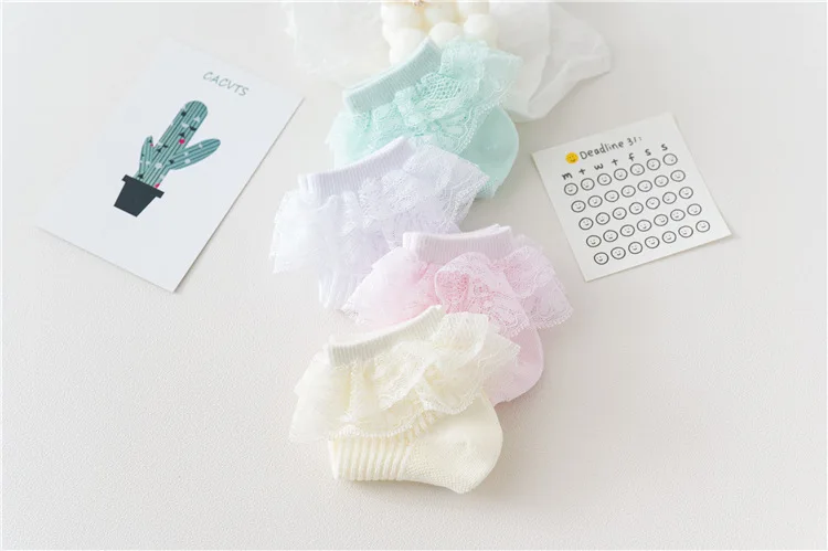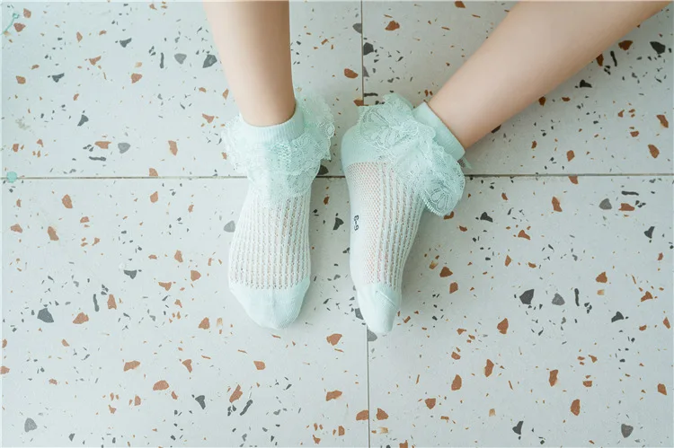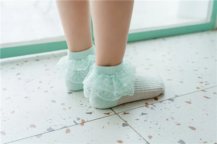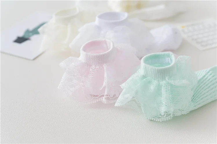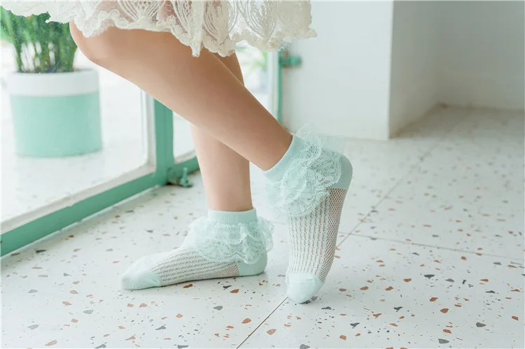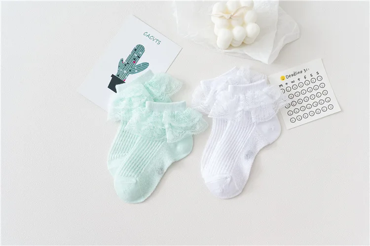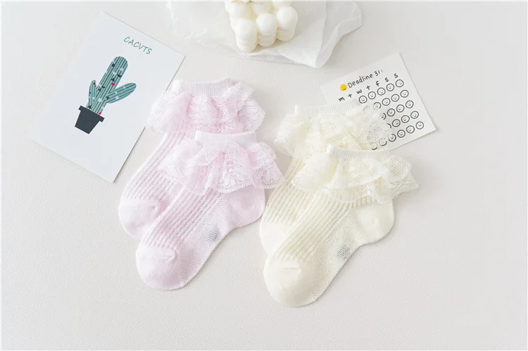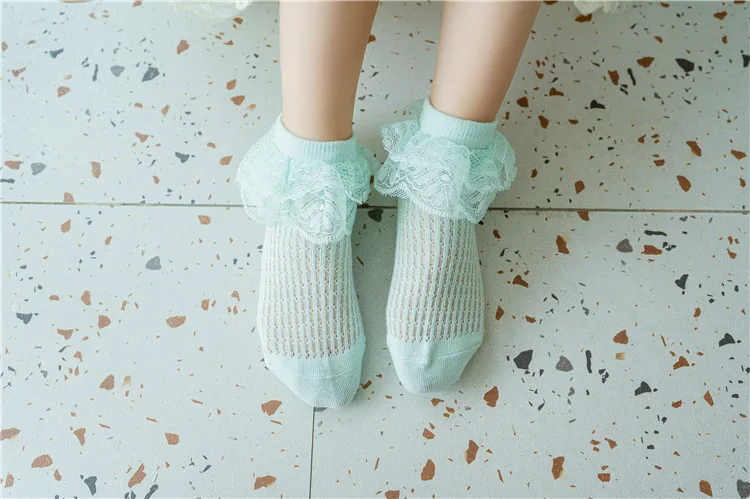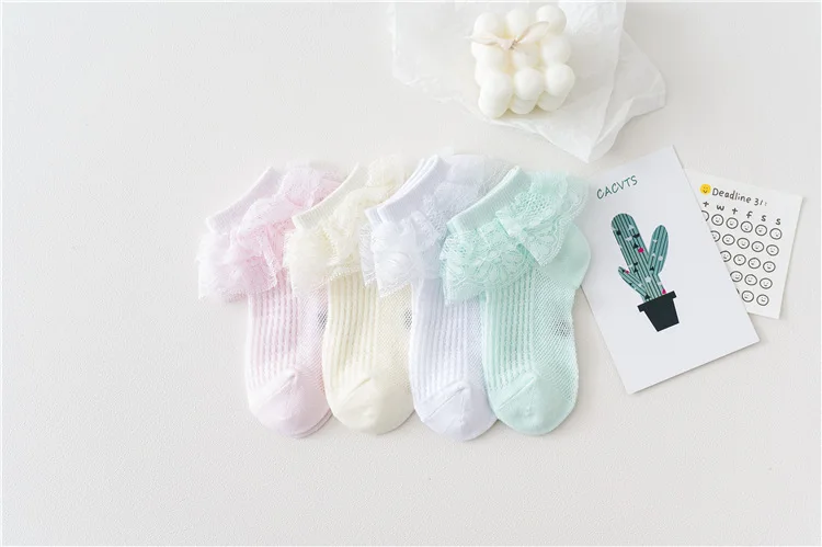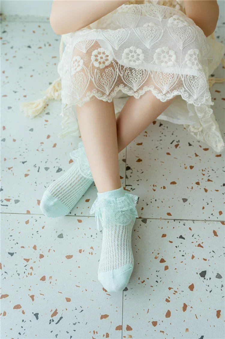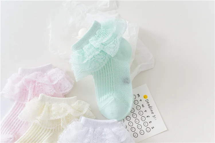 New Summer Baby Girls Kids Mesh Socks Fashion Lace Ruffle Frilly Flower Cotton Short Sock Breathable Princess Baby Girls Socks