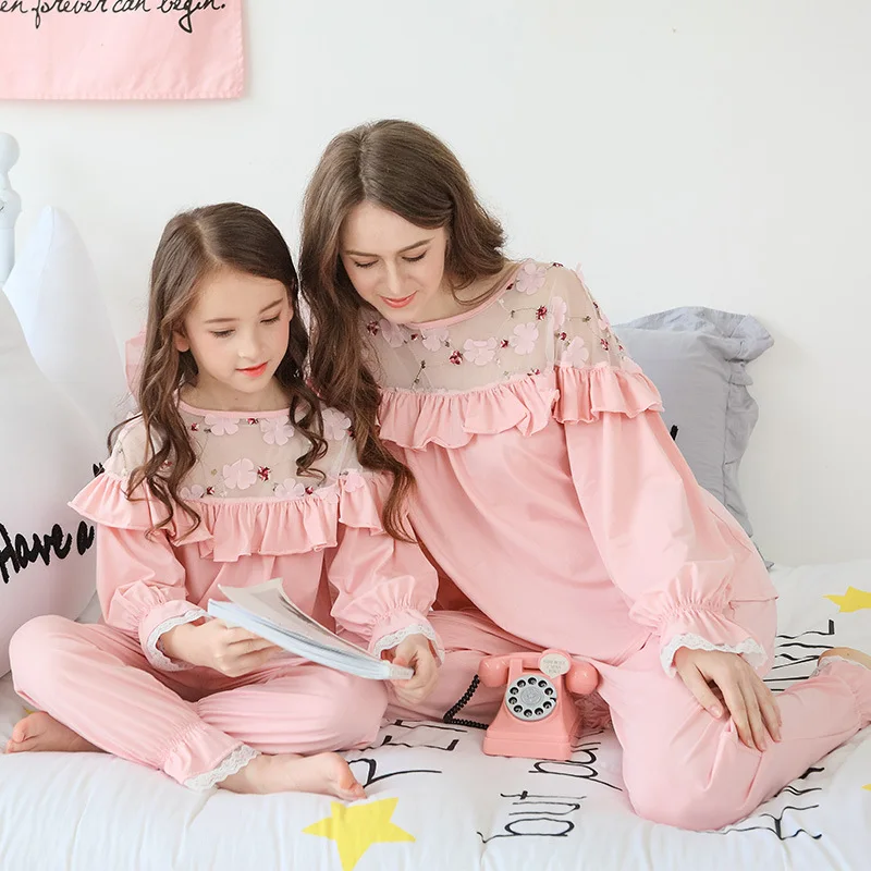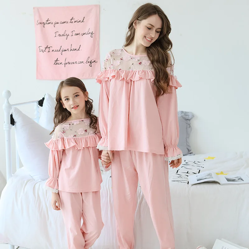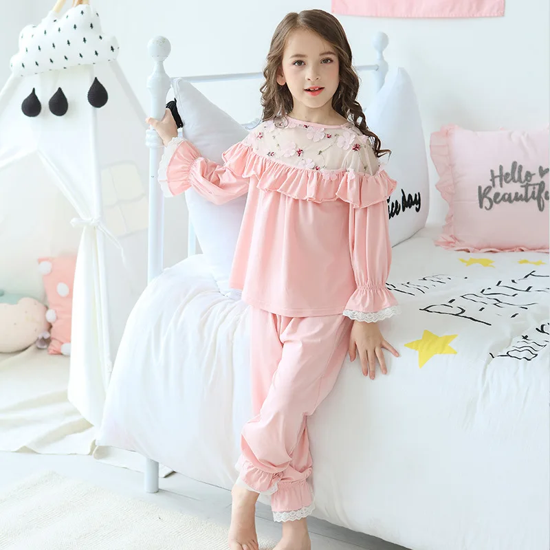 New Summer Girls Cotton Long Sleeve Girls Pyjamas 2pcs