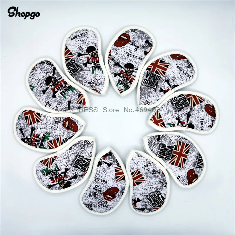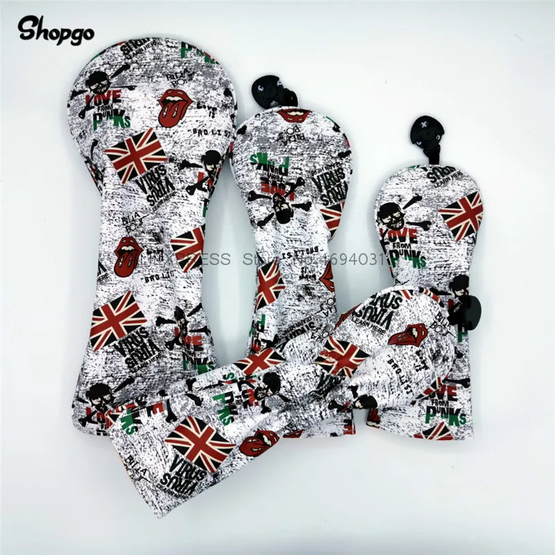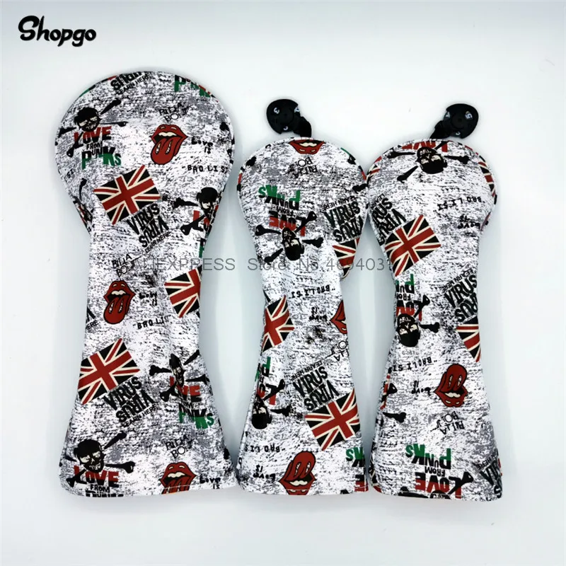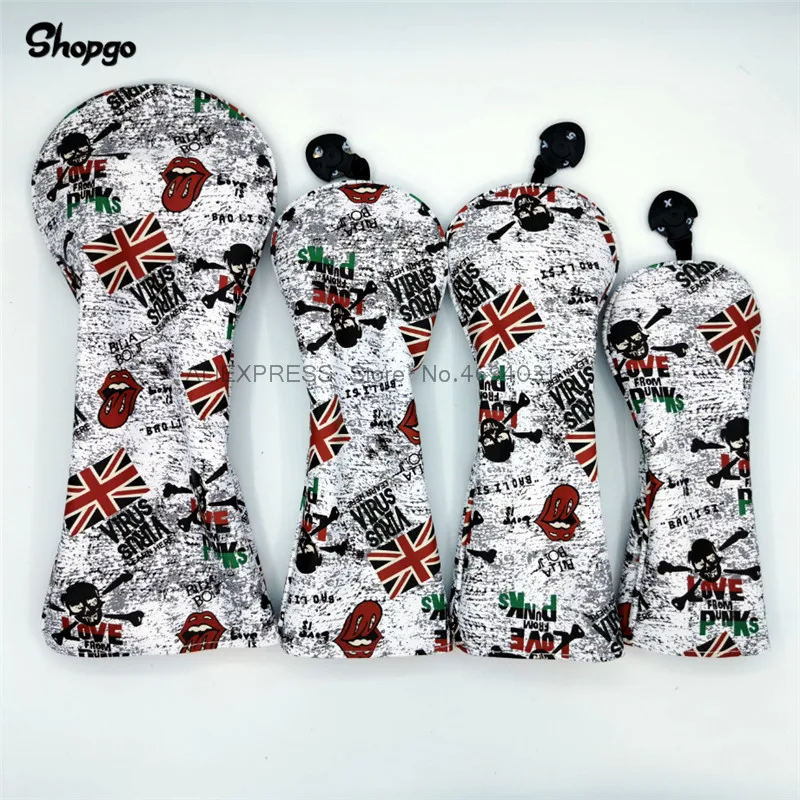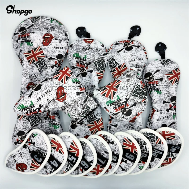 New UK Skull Golf Complete Set Head Covers Driver Fairway Woods Hybrid Irons Putter Covers Mascot Novelty Gift