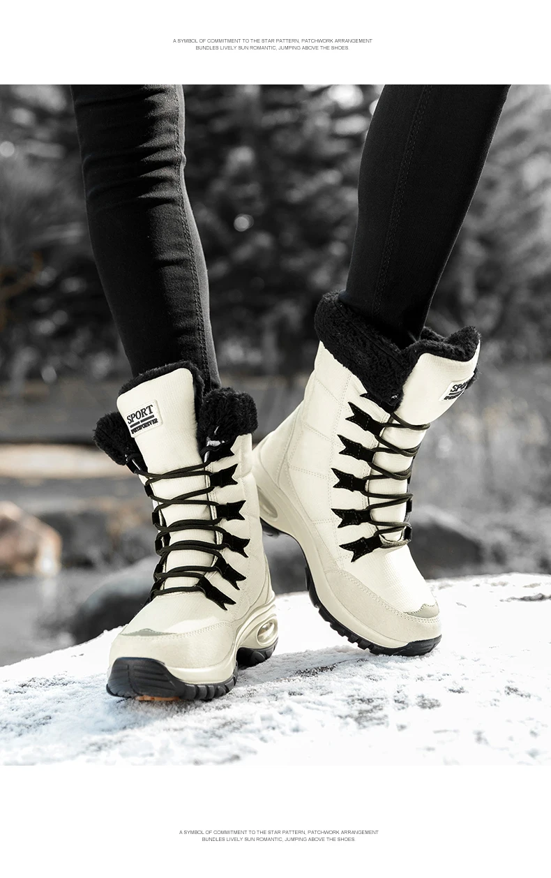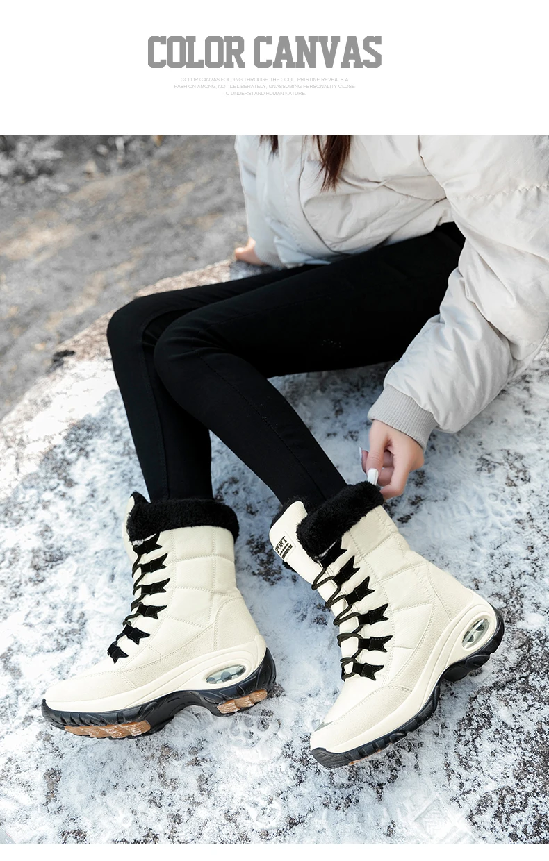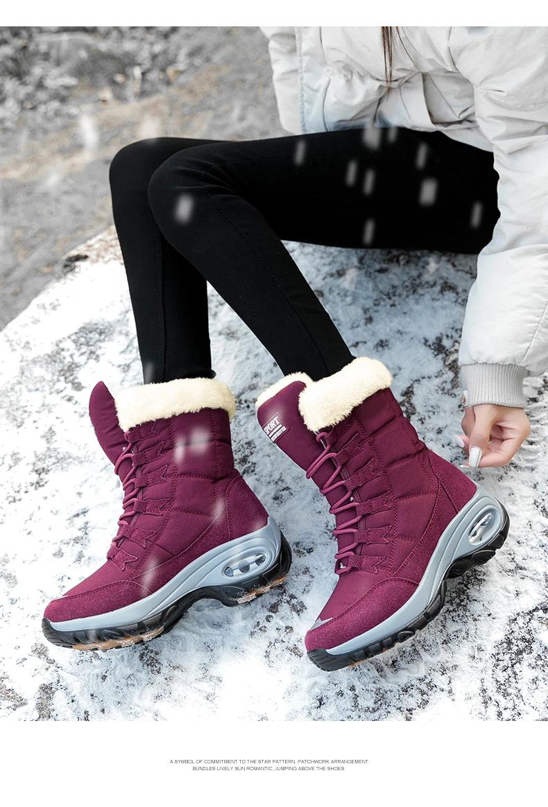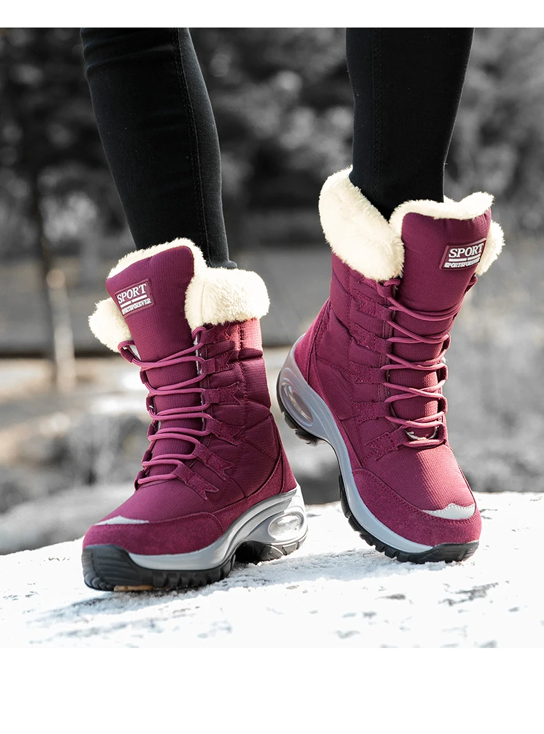 New Winter Women Boots Waterproof Keep Warm Mid-Calf Snow Boots Women Lace-up Comfortable Ladies Boots chaussures femme AB702