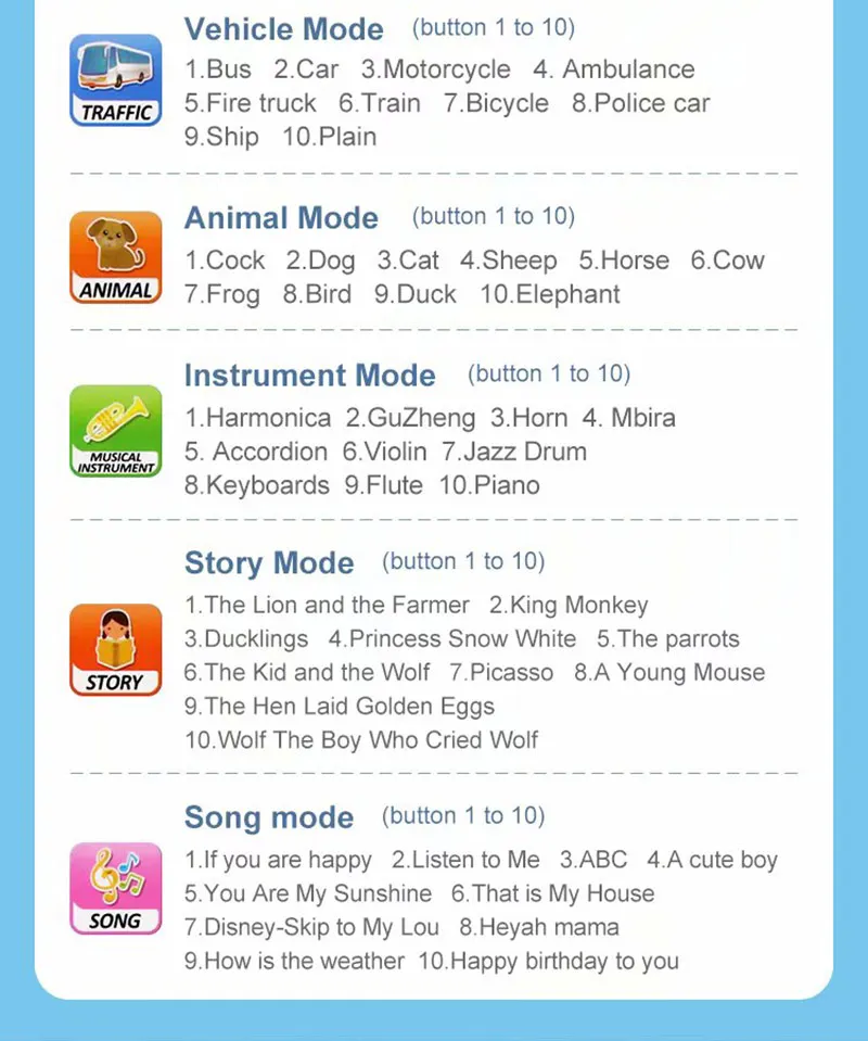 1. After placing the battery, press the home button to turn it on / off, and then press the other icon to start learning.