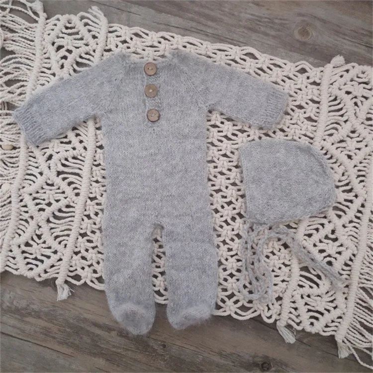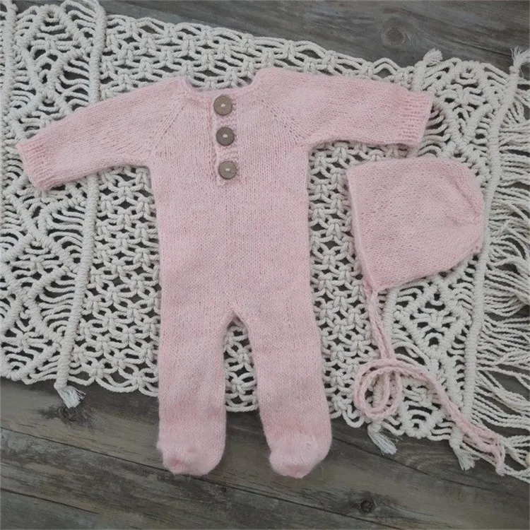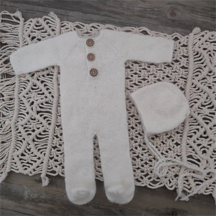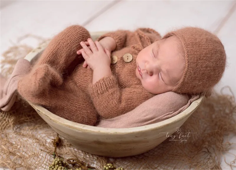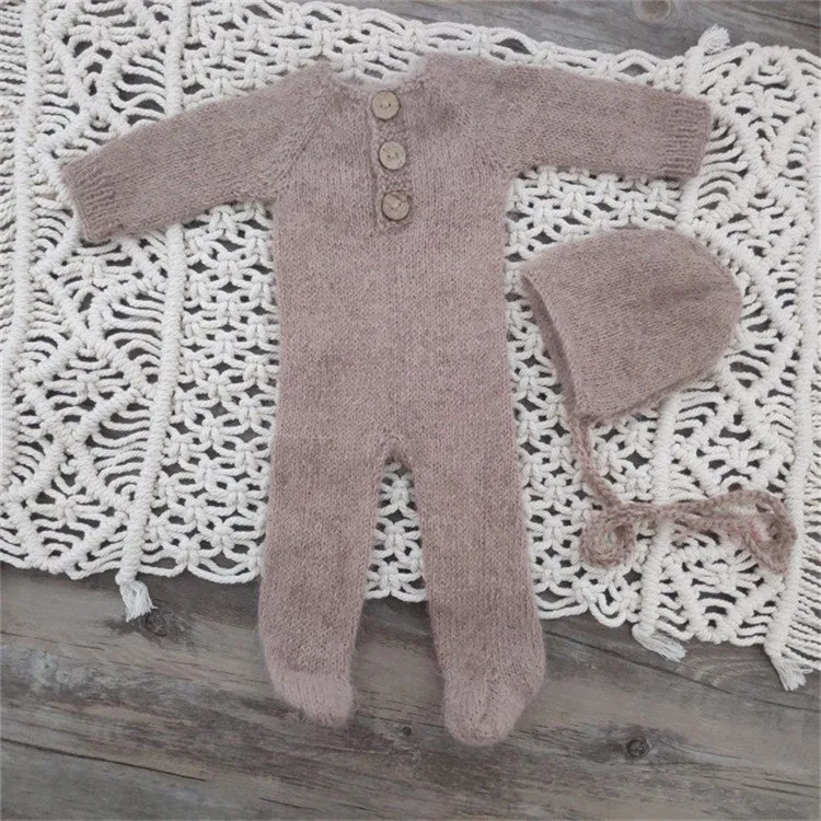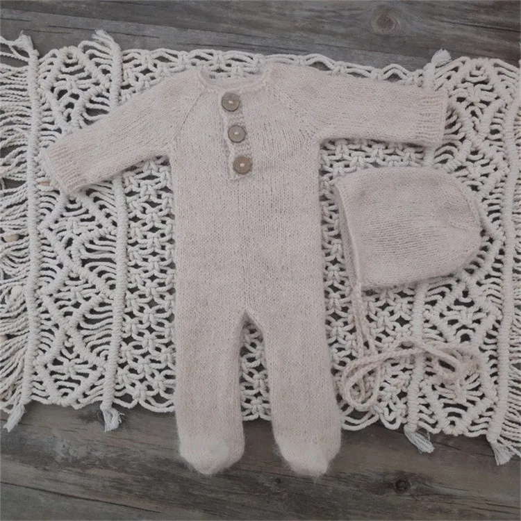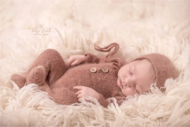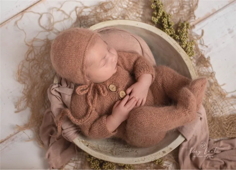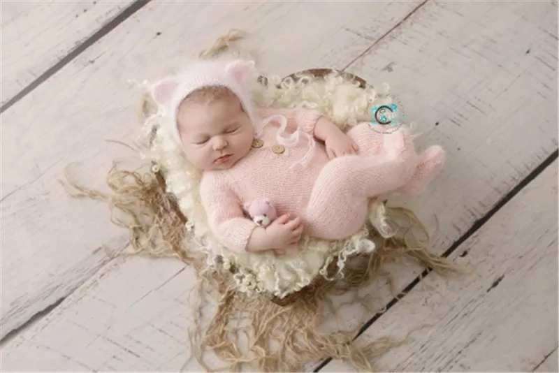 Newborn photography props,handmade mink yarn outfits bodysuit with bonnet baby photography props