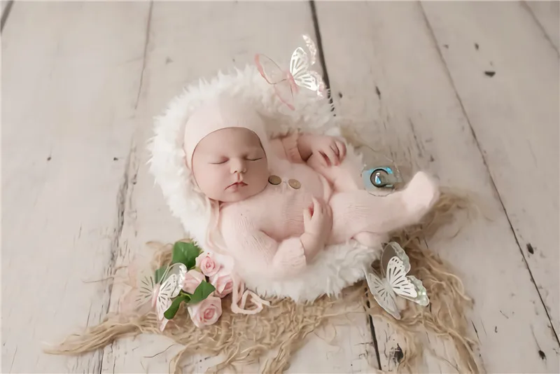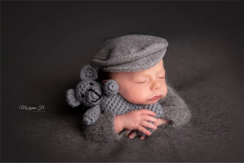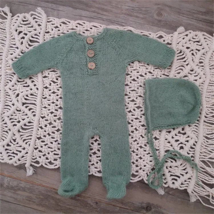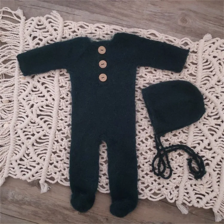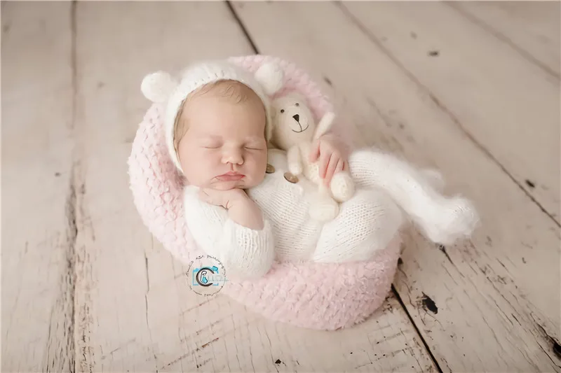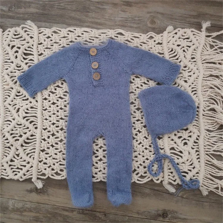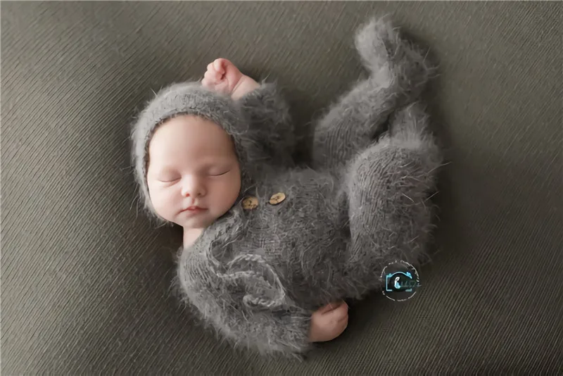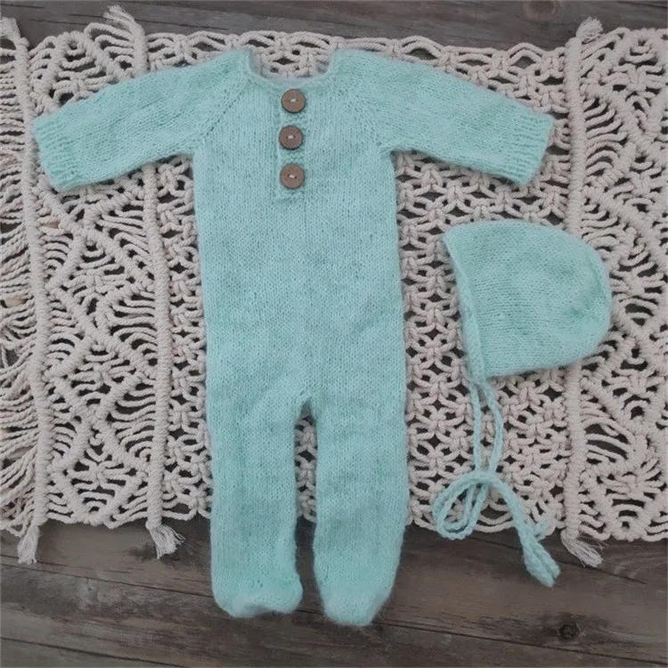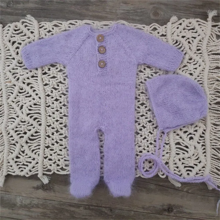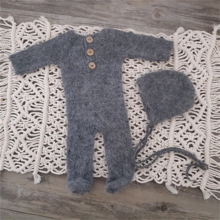 Newborn photography props,handmade mink yarn outfits bodysuit with bonnet baby photography props