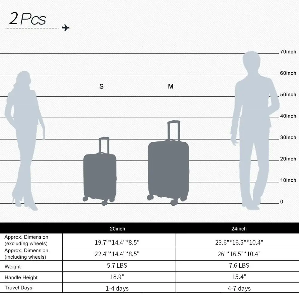 NEWCOM Luggage Sets 2 Piece 20 Inch 24 Inch Spinner Suitcase Lightweight PC Hard Shell Hardside Trolley Case Build-In TSA Lock (