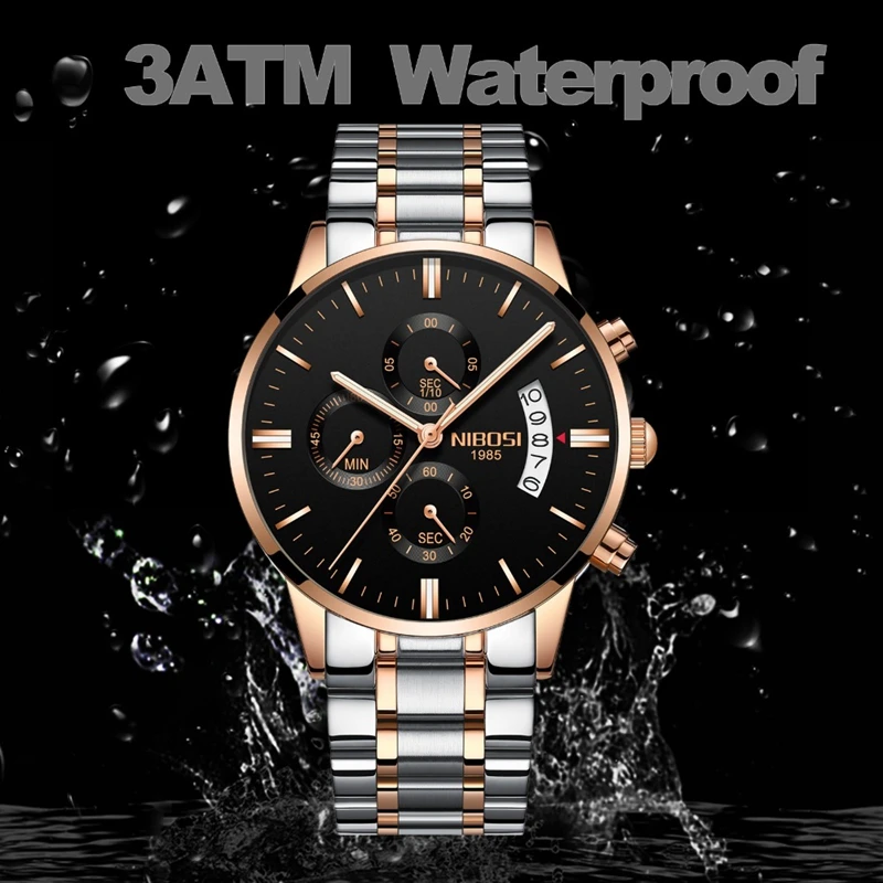 NIBOSI Golden Watch Dropshipping Luxury Brand Men’s Watches Stainless Steel Chronograph Auto Date Business Quartz Wristwatch