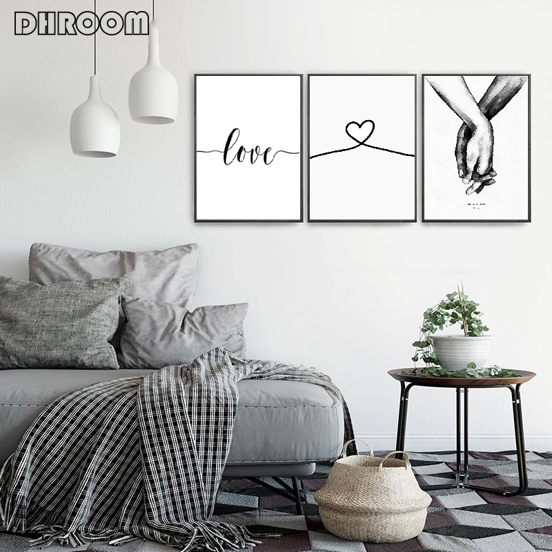 Nordic Back White Style Sweet Love Wall Art Canvas Poster Minimalist Print LOVE Quotes Painting Picture for Living Room Decor