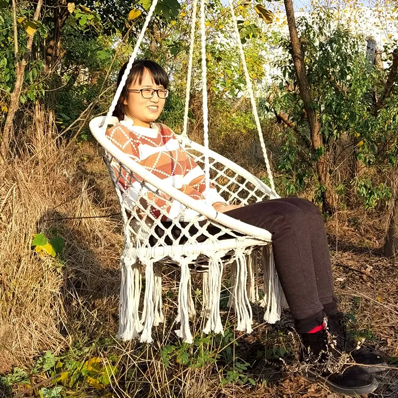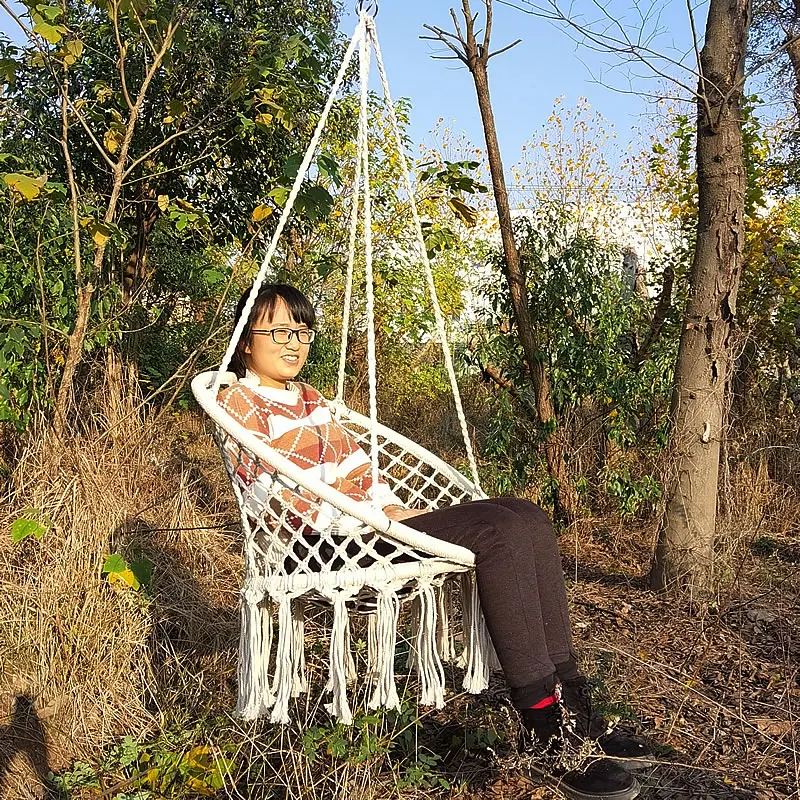 2. Comfort and relaxation. Lace swing net chair can be used as a light cradle and rocking chair reading chair and relaxation meditation chair, so that sweetly swings outside, enjoy nature, rest in the sunset, relax by the pool, or in the lounge. Deck, listen to the rain, crickets, birdsong or quiet stargazing night, etc.