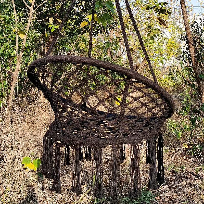 5. Hand-made ethnic style unique hammock swing style for any home to bring fashion and unique touch. The rope and swing are designed with lace net chair pattern and tassels. Manufacture 100% manual cotton. Hand wash. Prevent outdoor elements.