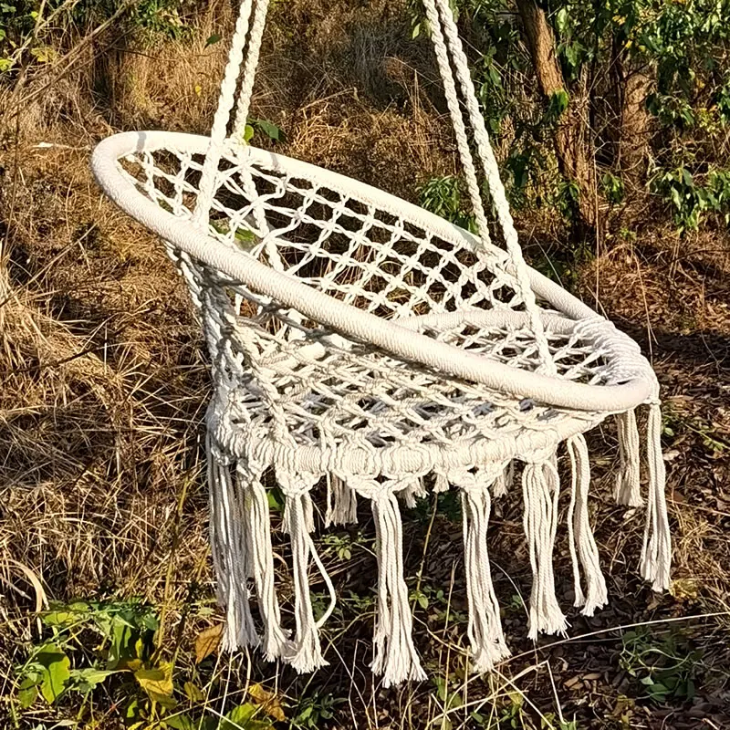 Safe Beige Hanging Hammock Chair Swing Rope Outdoor Indoor Bar Garden Seat Lazy Chair Collapsible Garden No Sticks Dropshipping