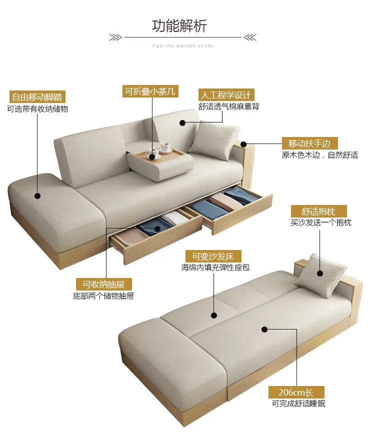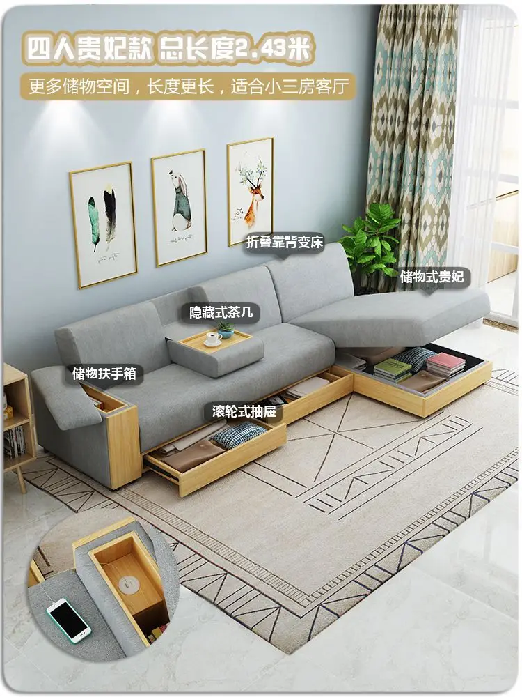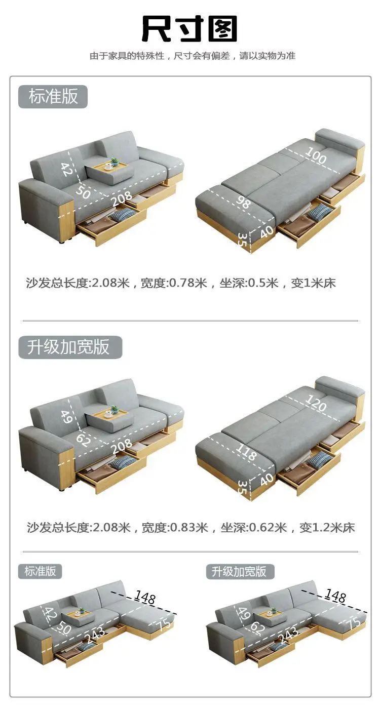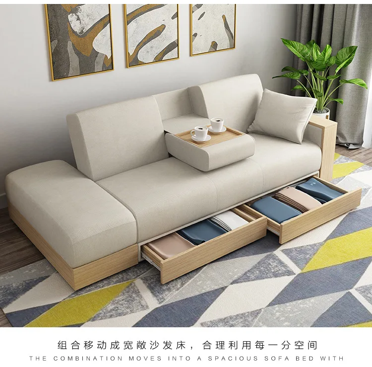 Nordic small apartment space-saving foldable multi-function disposable sofa bed dual-purpose storage storage 1.2 meters double