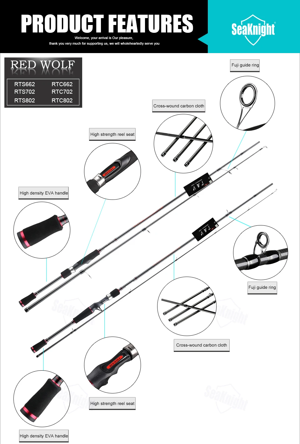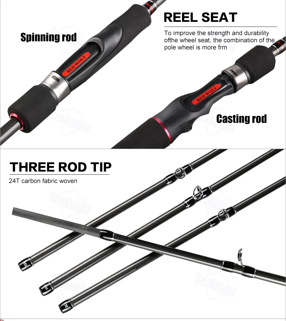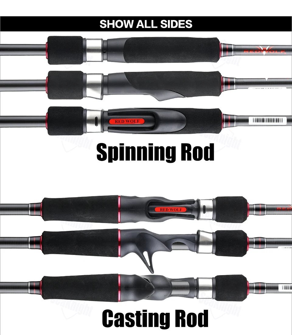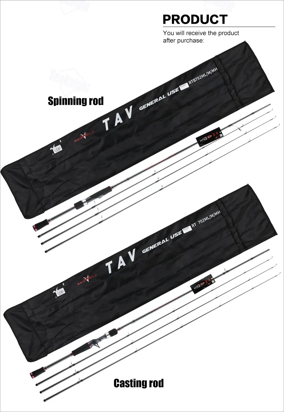 Original Red Wolf TAV Carbon Spinning Casting Fishing Rod M MH ML Power 1.98M 2.13M 2.44M Ultralight 3 Tips Rod With EVA Grip