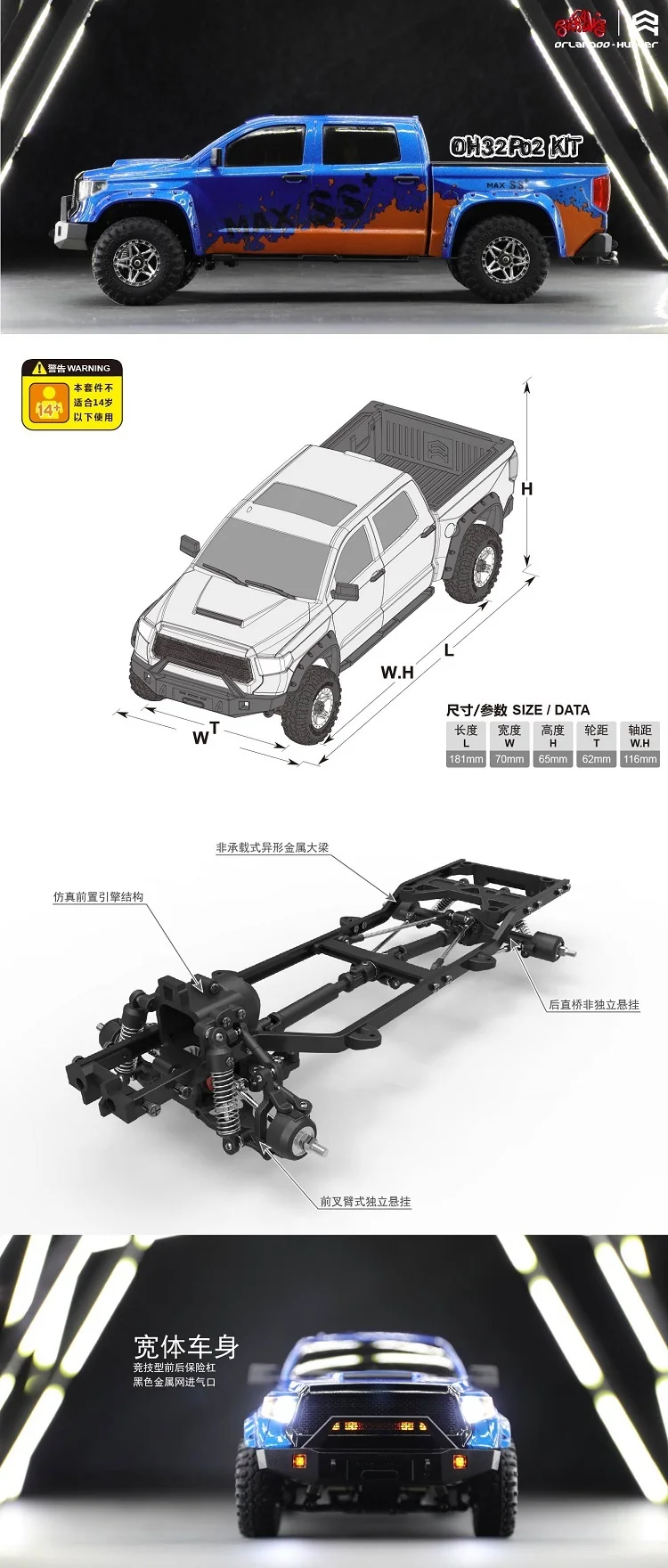 Orlandoo Hunter RC crawler model car P02 KIT for Tundra 1:32 pickup truck DIY parts not painted