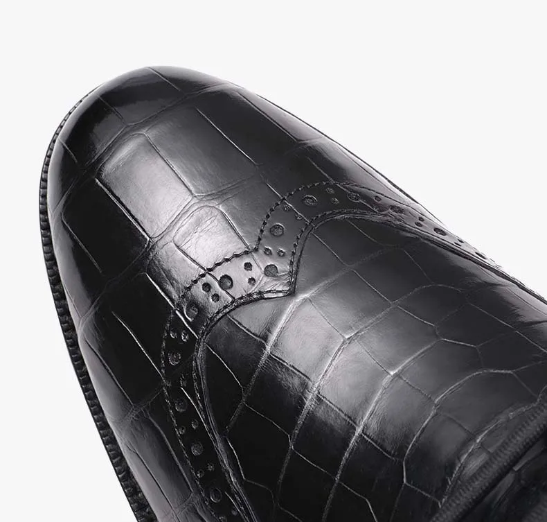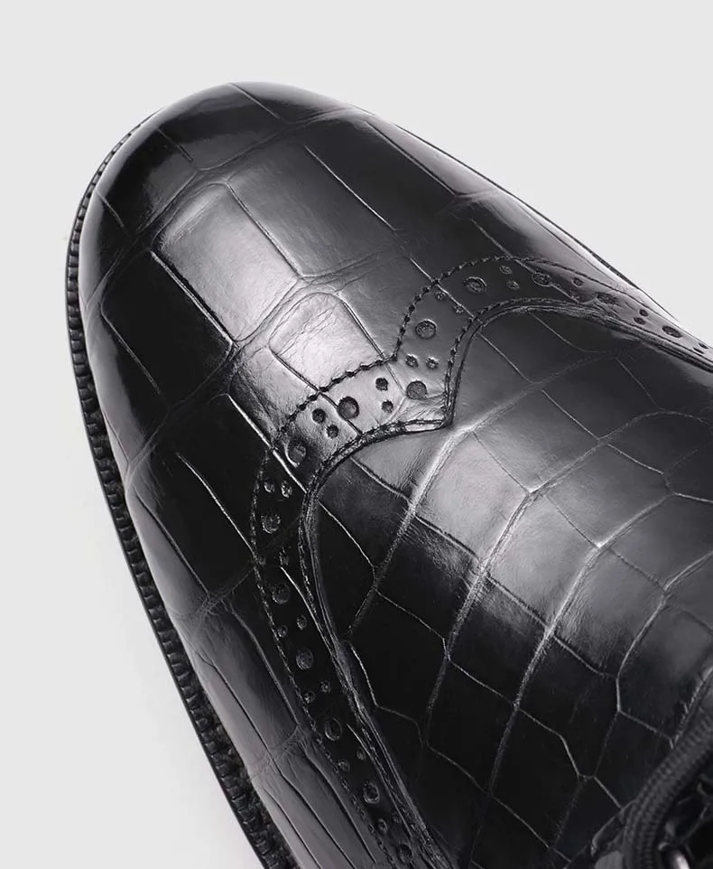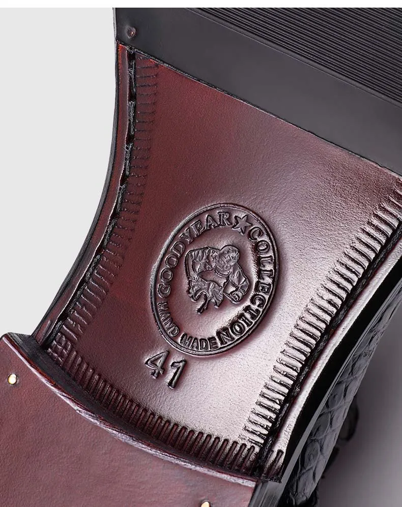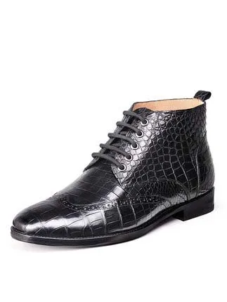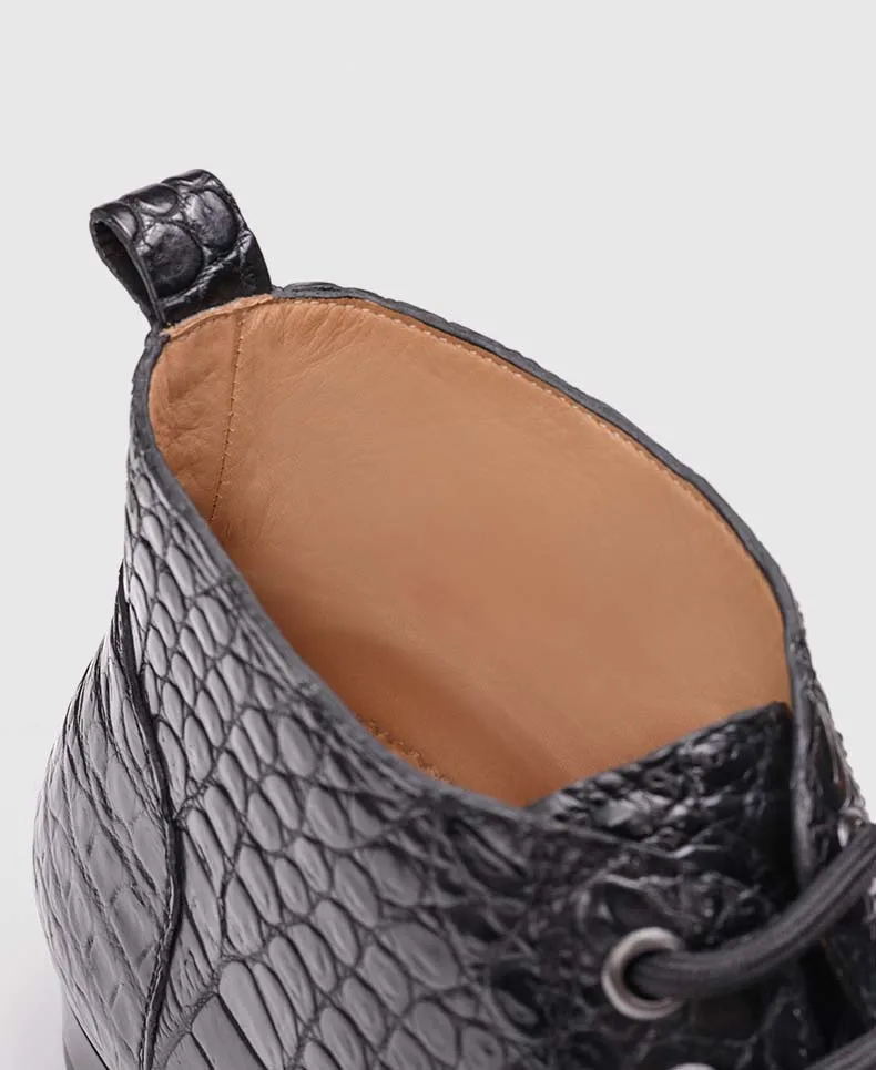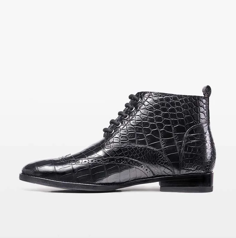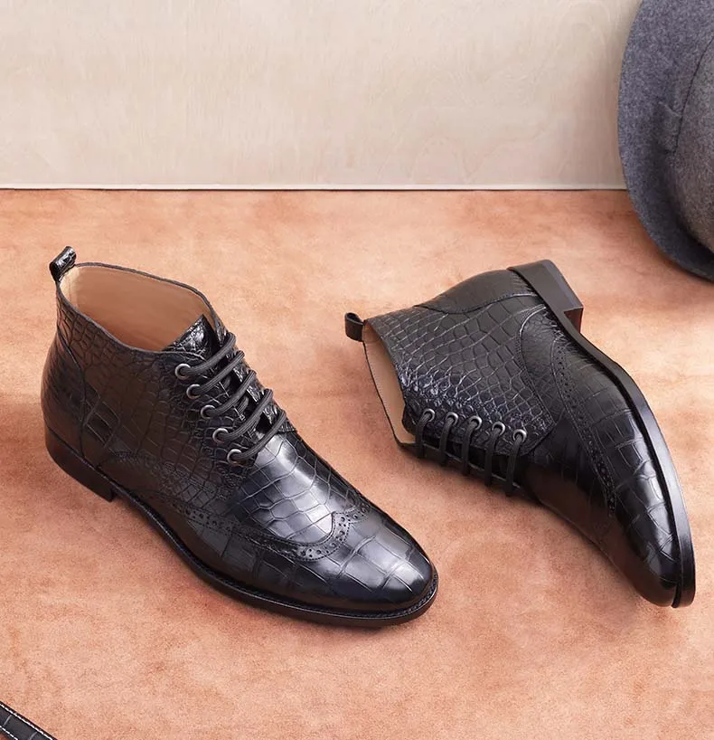 ouluoer import crocodile leather men boots Ankle boots autumn and winter men shoes leather high top black Martin boots for men