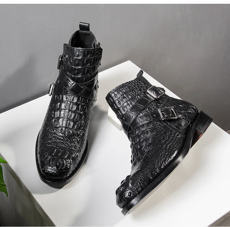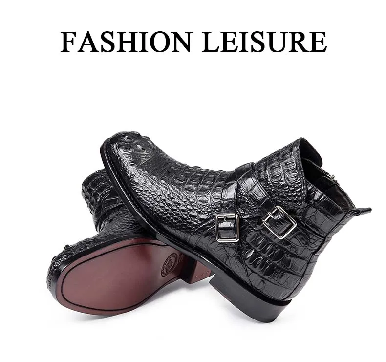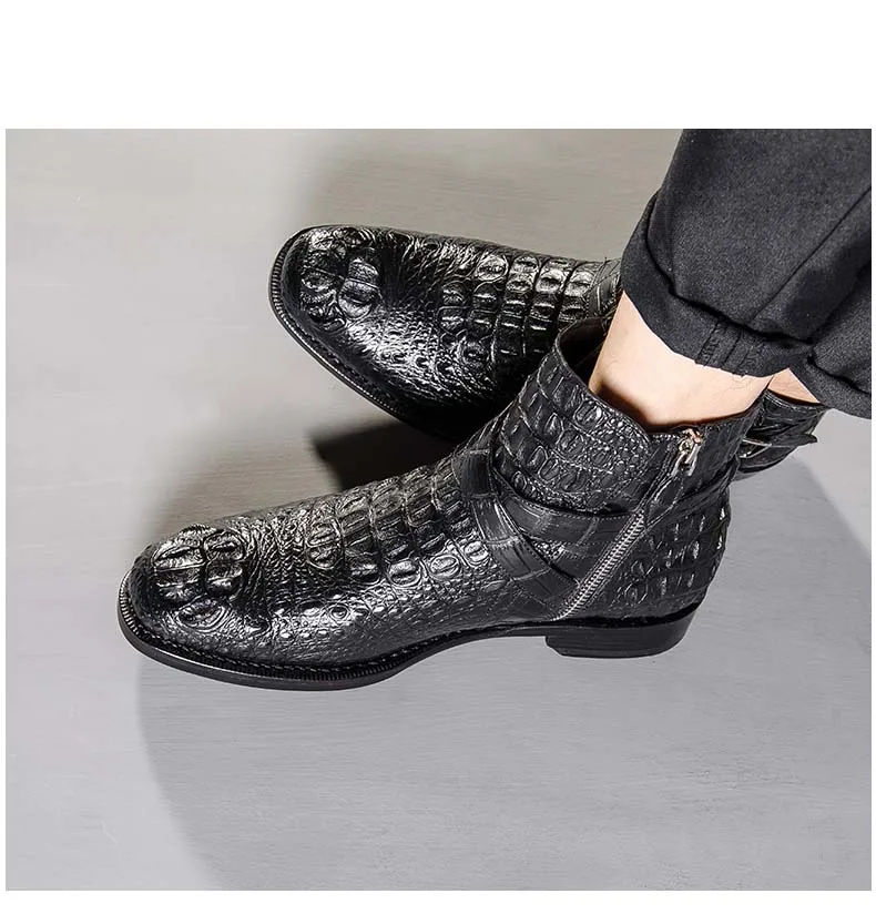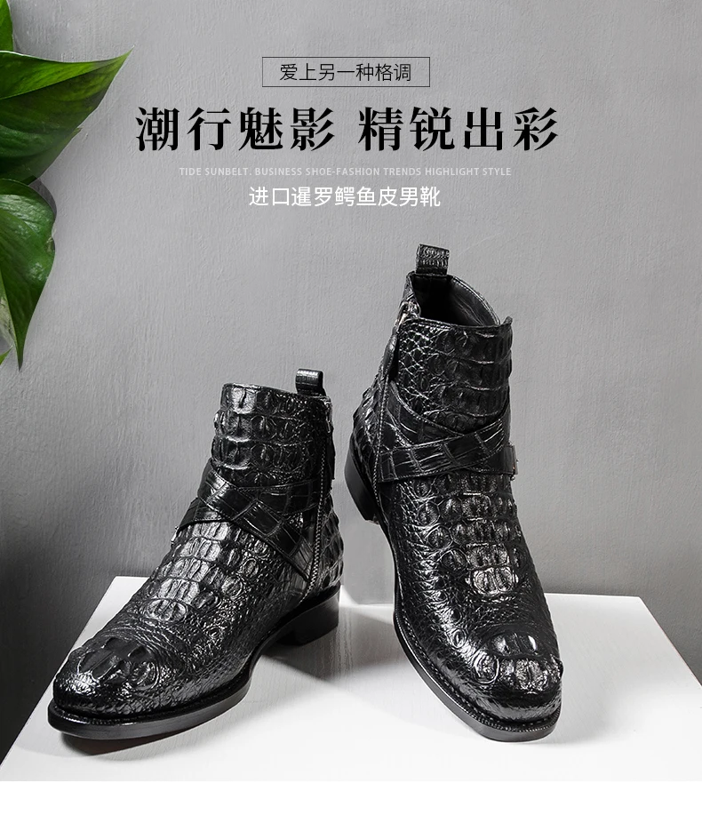 ouluoer true new Thailand crocodile leather Men shoes winter men boots High help Round head British men boots Warm shoes