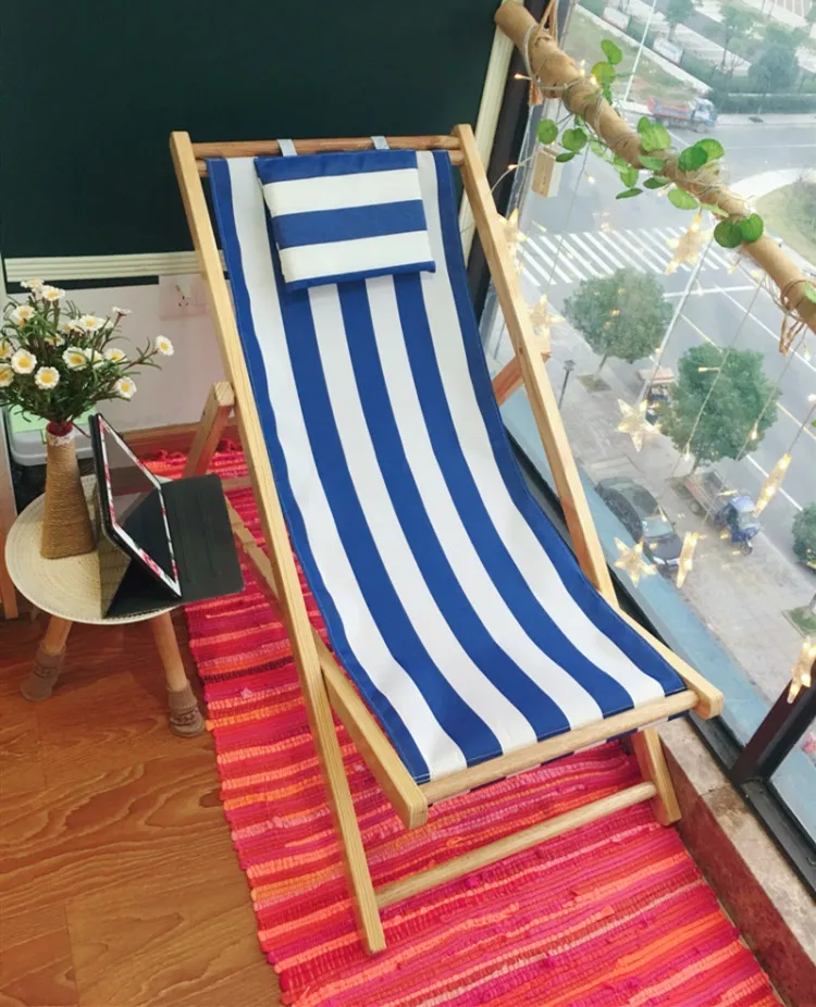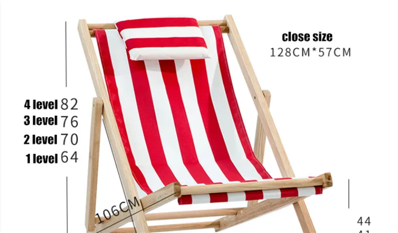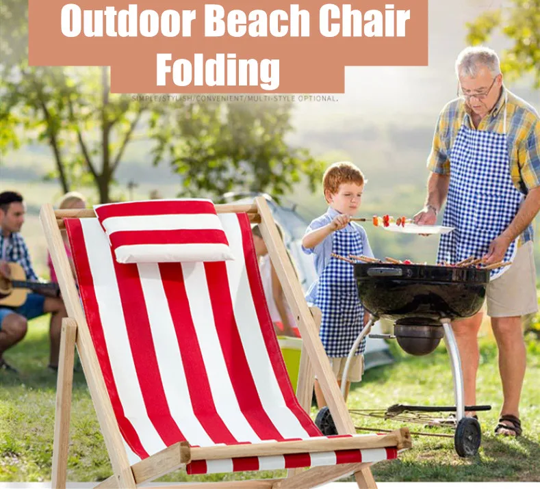 Outdoor Furniture Beach Chair Portable Folding Wood Chaise Lounge 5.5KG Adjustable Height Camping Chair Seat Outdoor Chaise