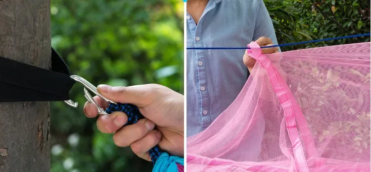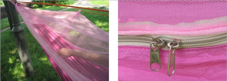 Outdoor portable double hammock with mosquito net camping survival recreational wear-resisting parachute mesh swings hammock