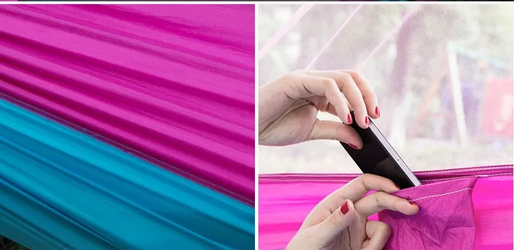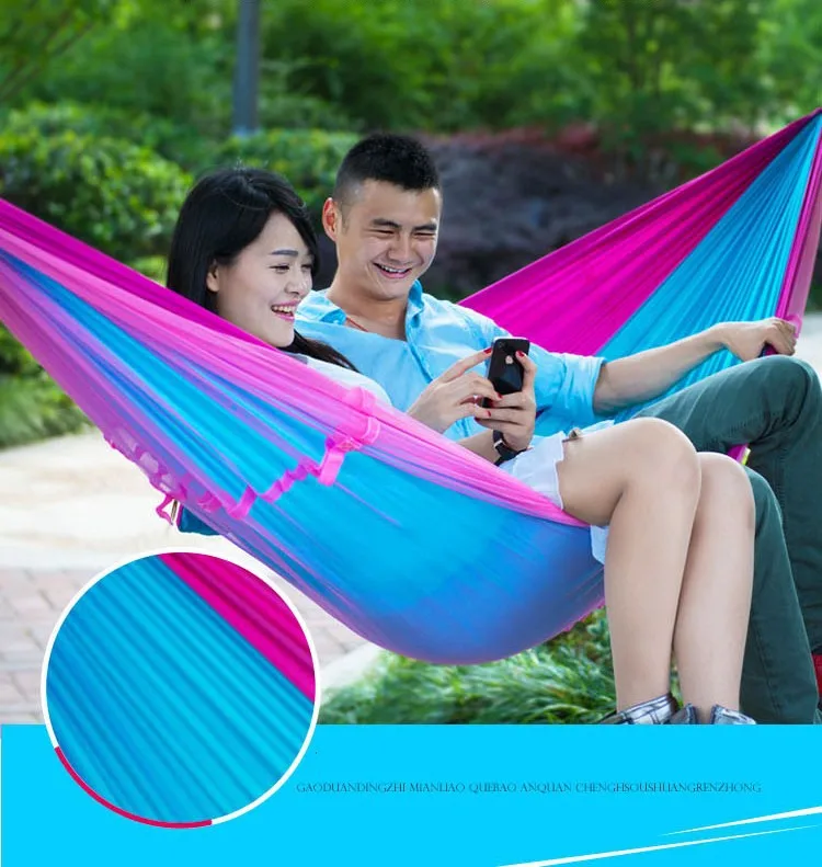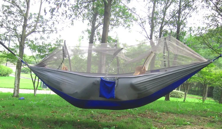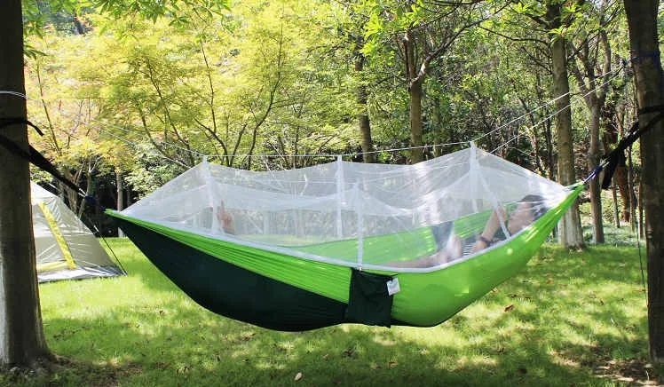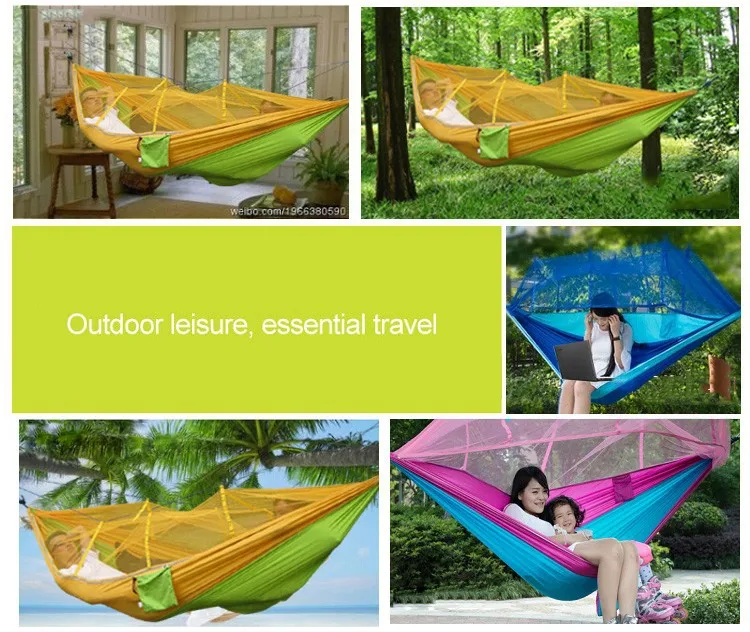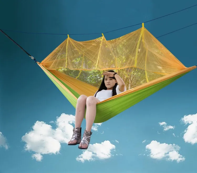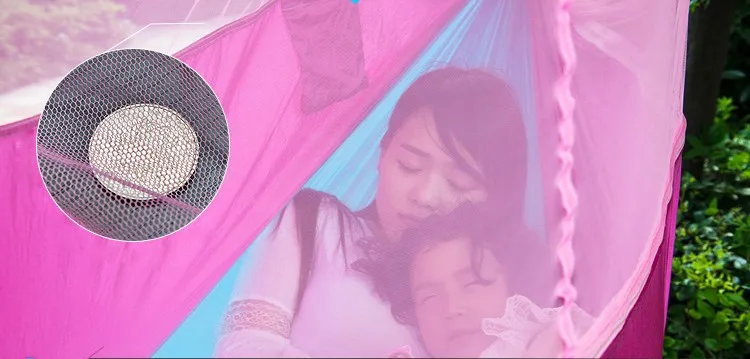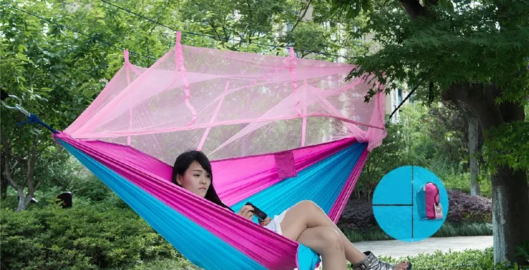 Outdoor portable double hammock with mosquito net camping survival recreational wear-resisting parachute mesh swings hammock