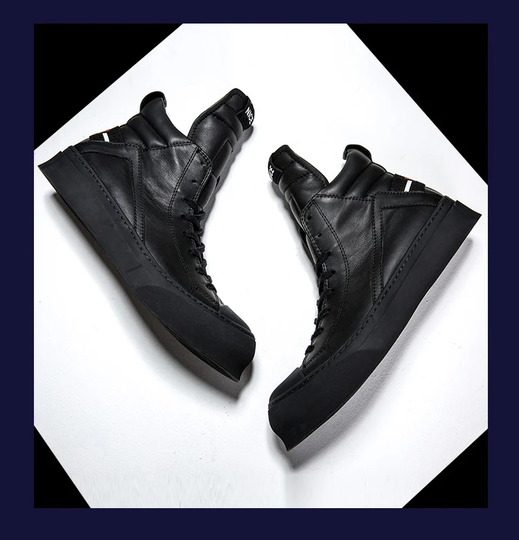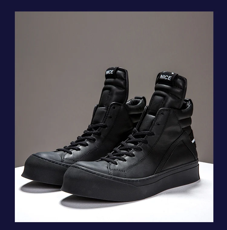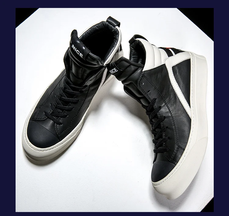 Owen Seak Men Shoes High-TOP Ankle Boots Genuine Leather Luxury Trainers Boots Casual Lace-up Zip Flats Shoes Black White Big Size