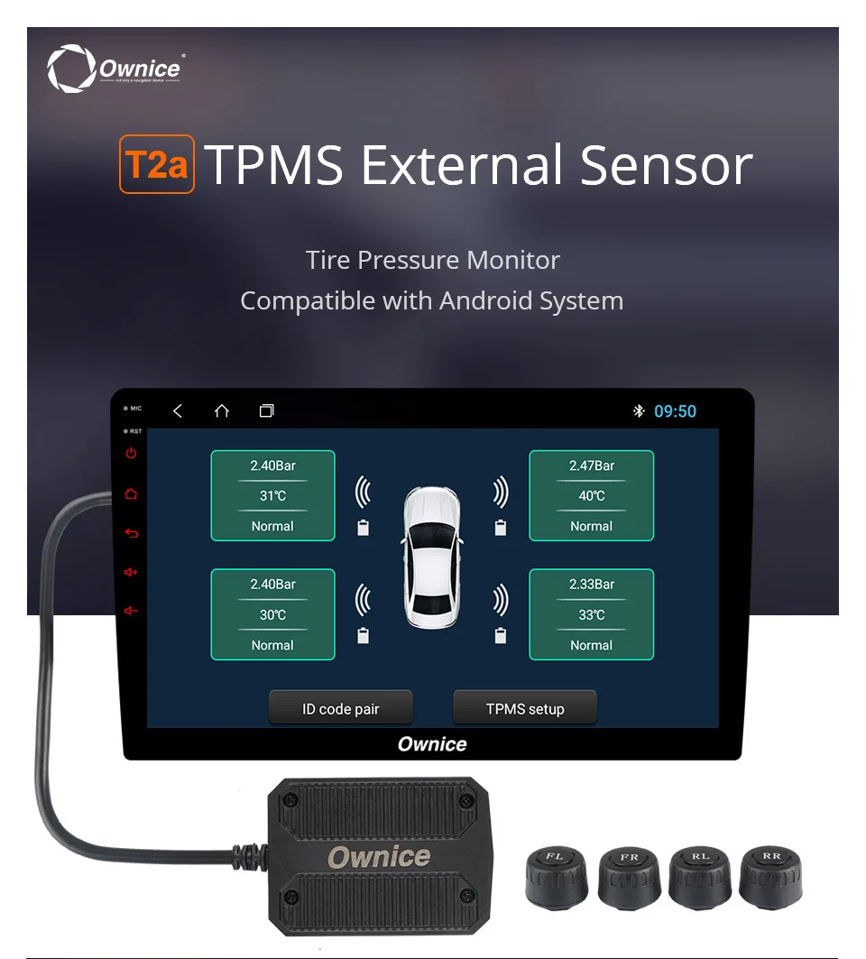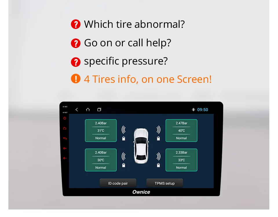 Ownice USB Android TPMS Tire Pressure Monitor Android Navigation Pressure Monitoring Alarm System Wireless Transmission TPMS