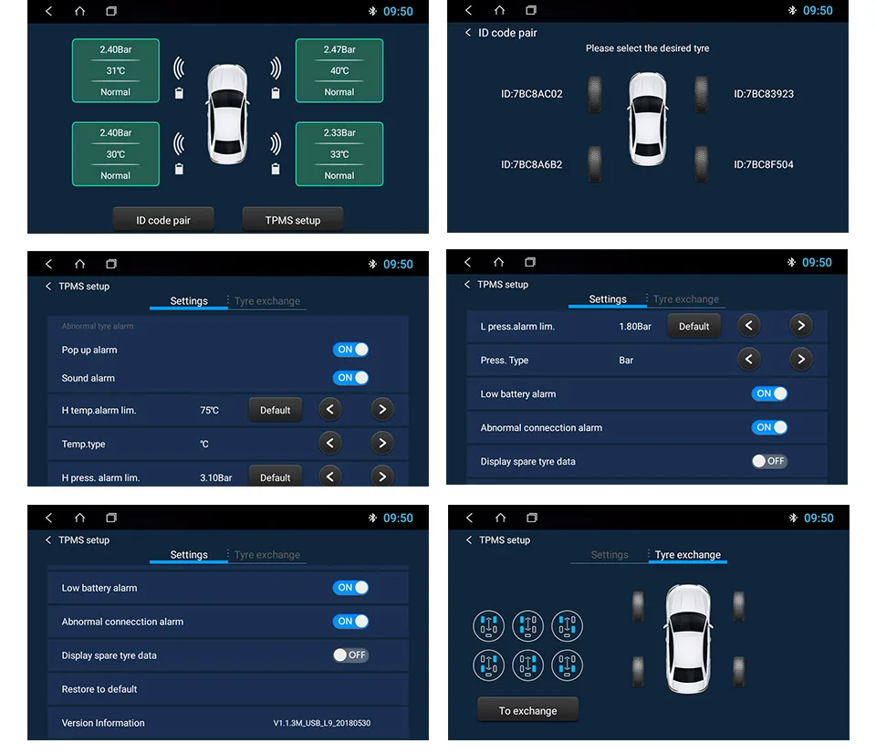 Ownice USB Android TPMS tire pressure monitor Android navigation pressure monitoring alarm system wireless transmission TPMS