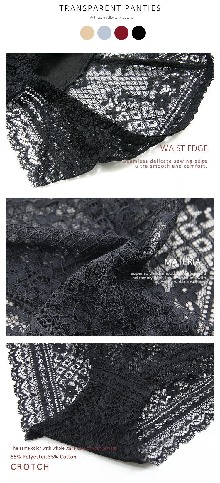 PAERLAN Solid color low-Rise hips Lace Flora Women Panties comfortable briefs sexy temptation hollow underwear
