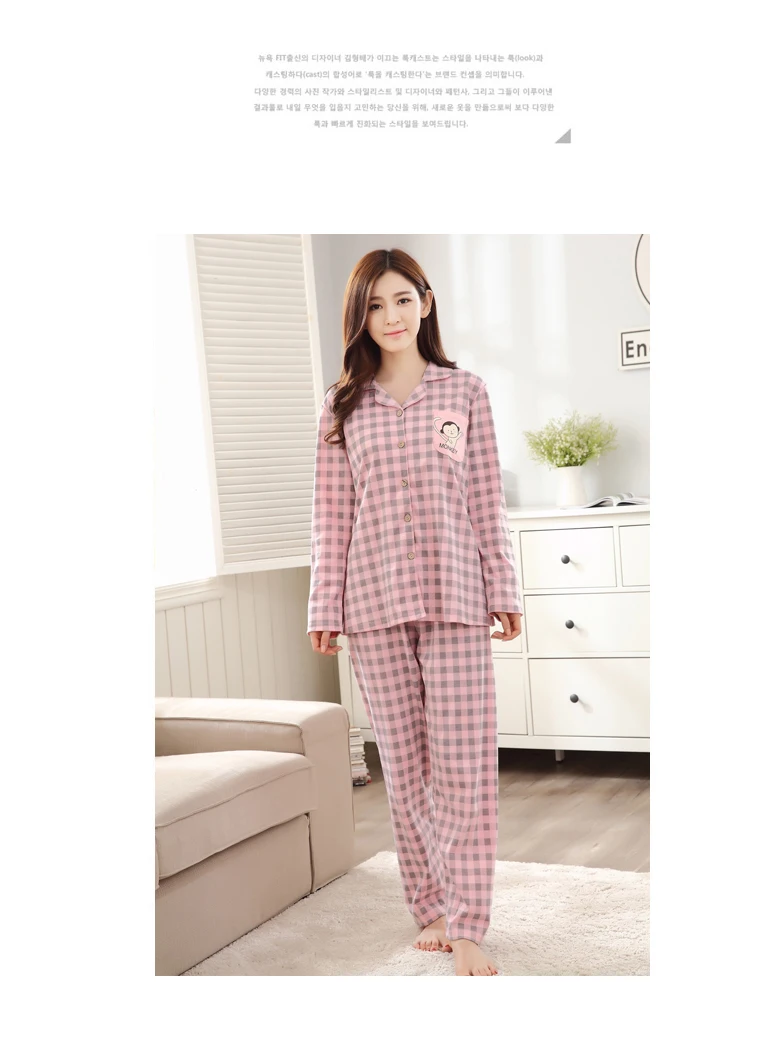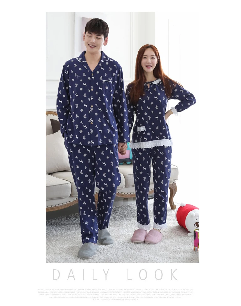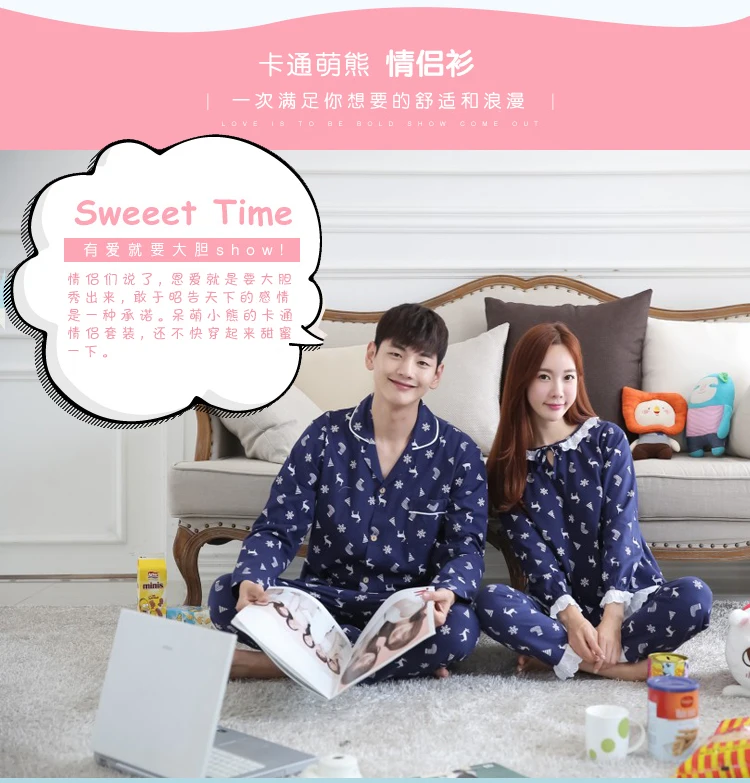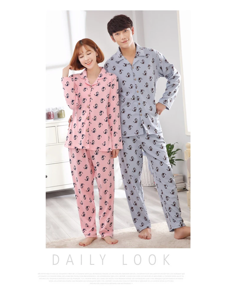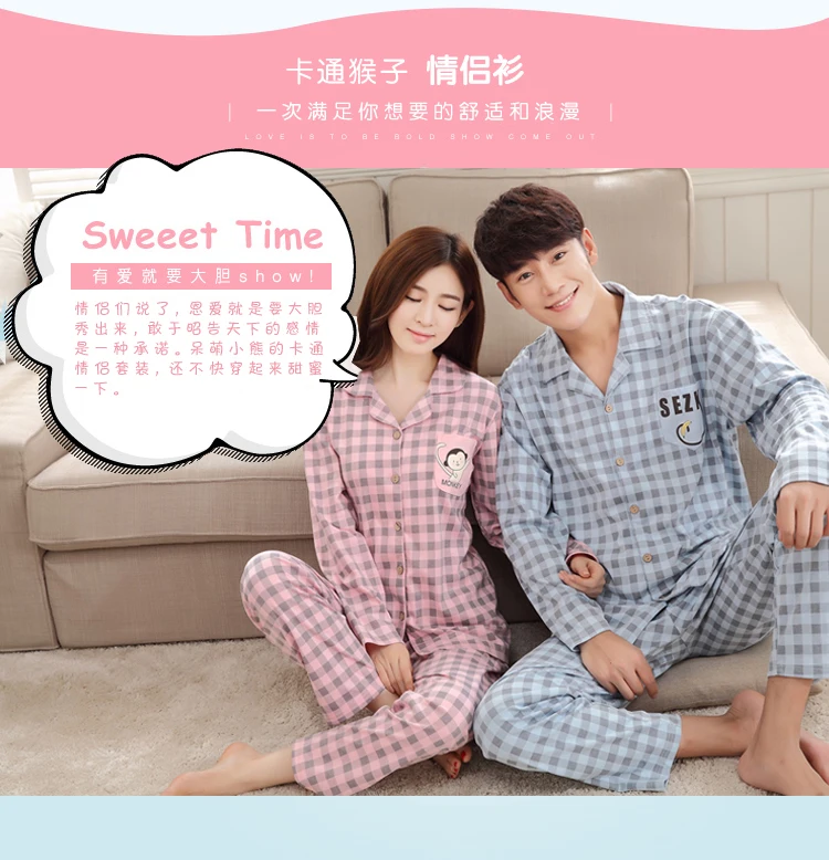 Pajamas Pyjamas Nightgown Pajama Set 2020 Couple women ‘s long – sleeved cotton collar plus XL cardigan men’ s home suits