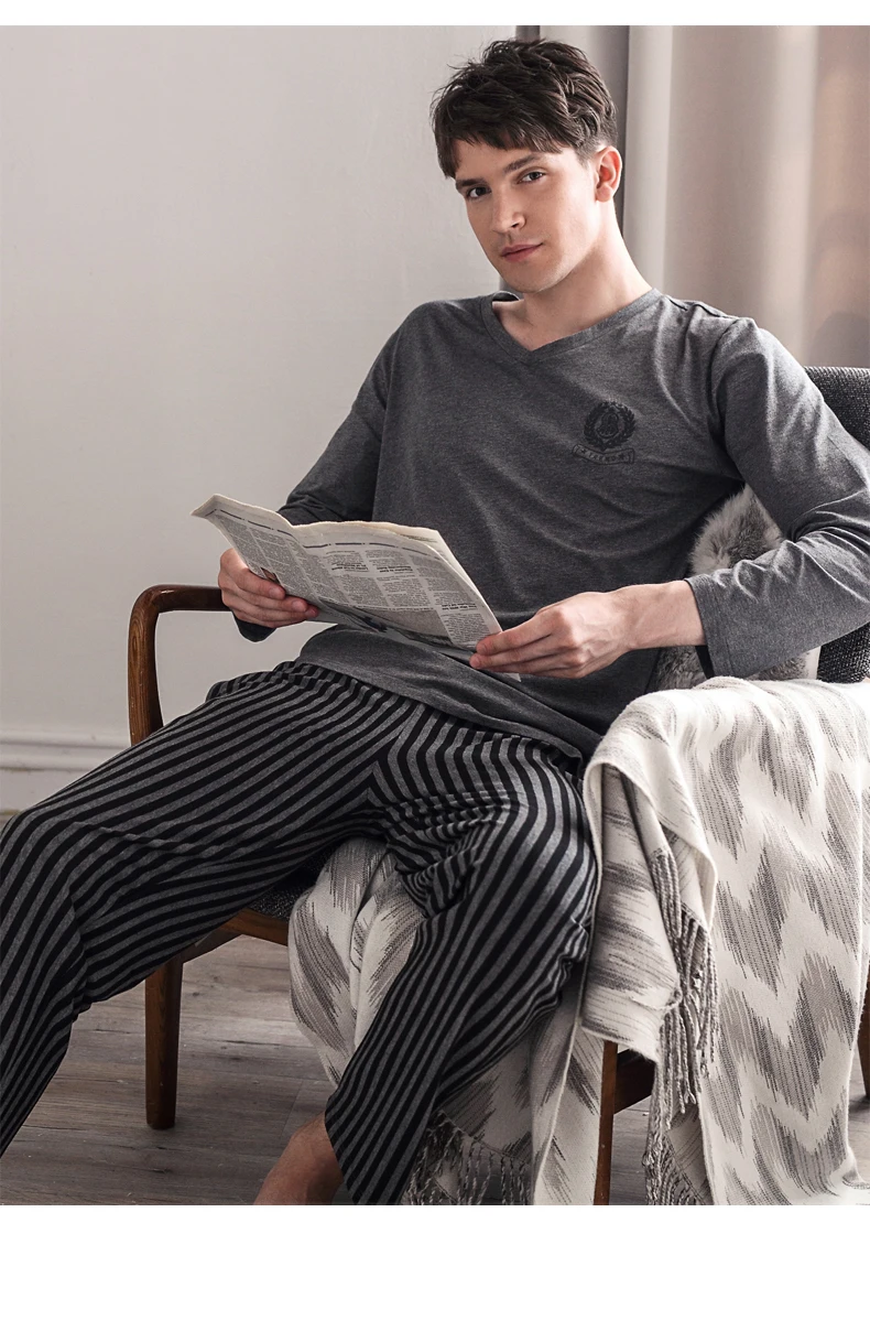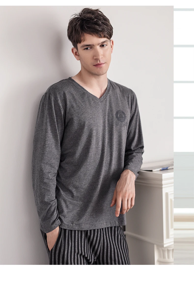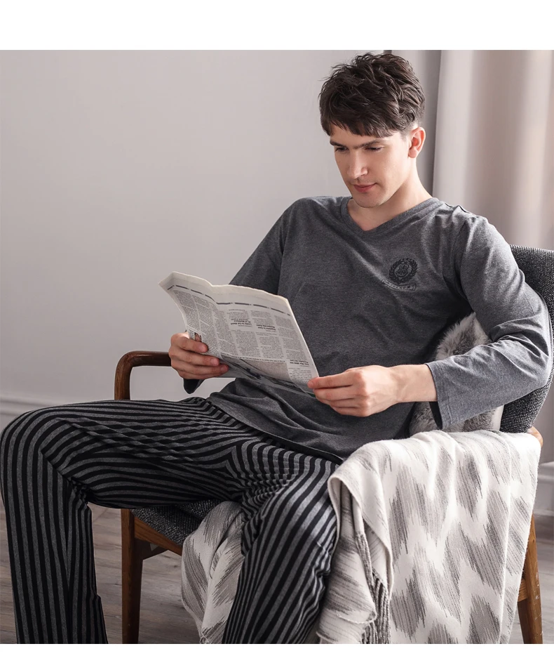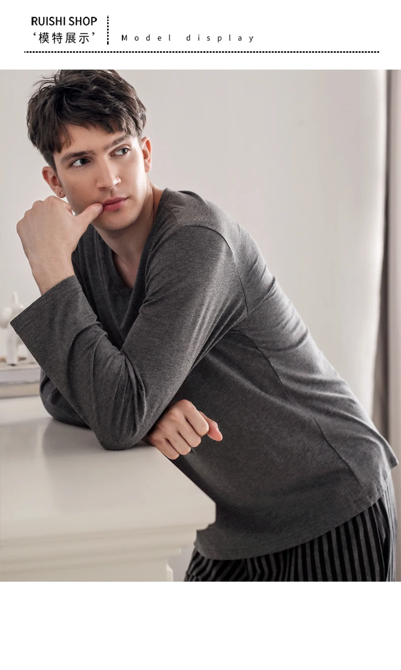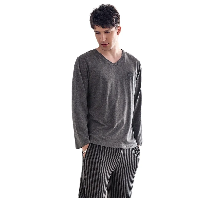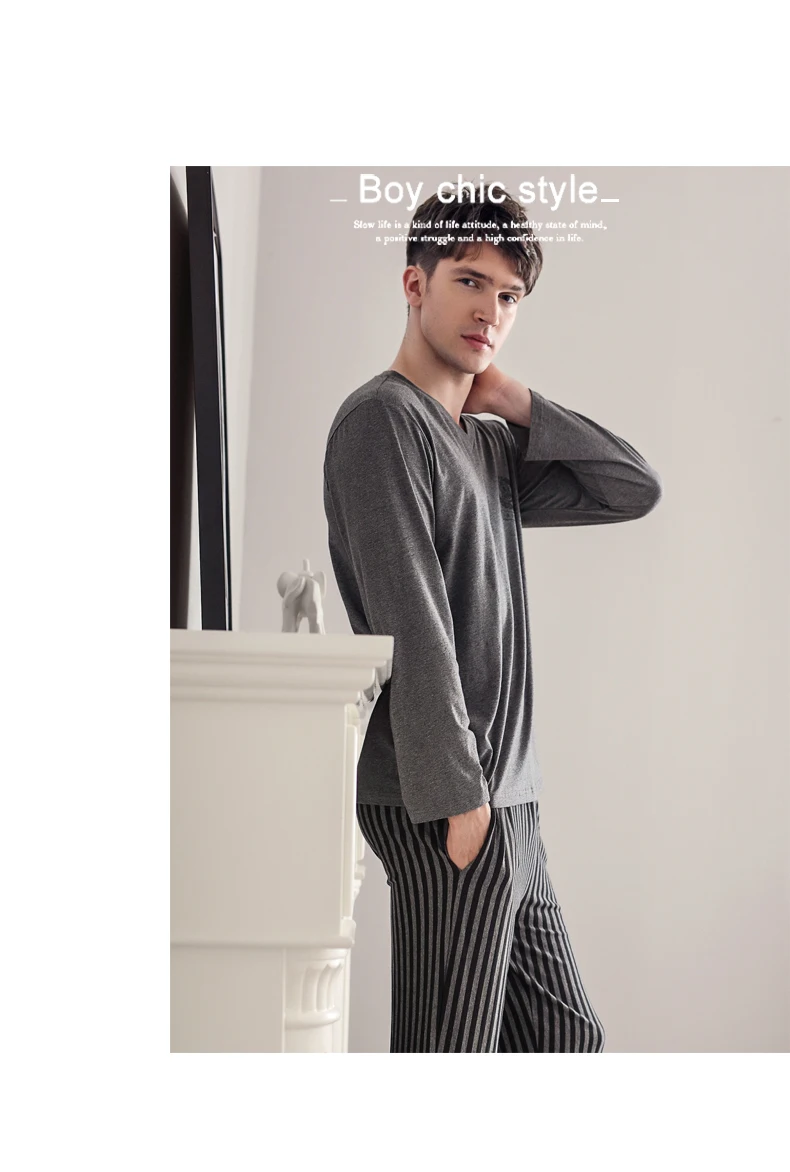 Pajamas Sleeping Suits for Men Fashion Men Sleepwear Modal Classy Pijama Hombre Plain Grey Male Pyjamas Long Sleeves Pajamas Men