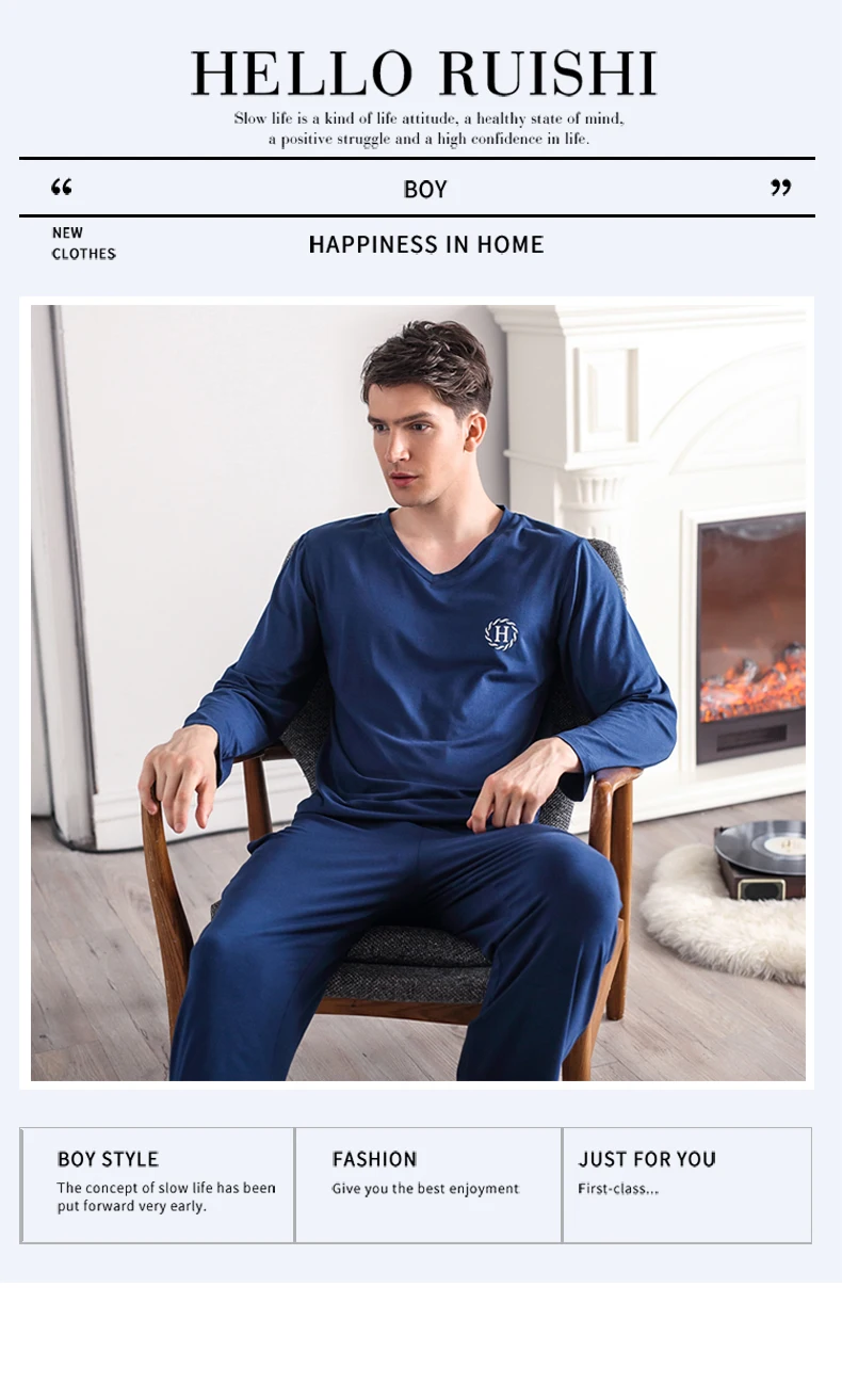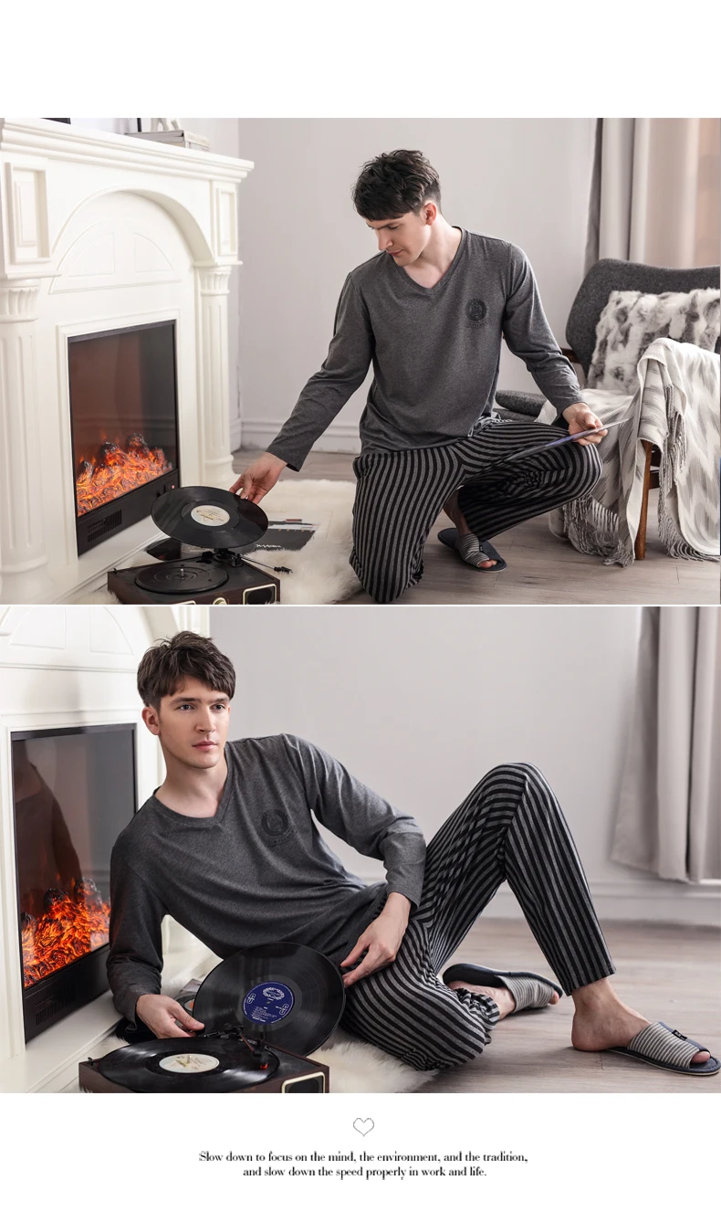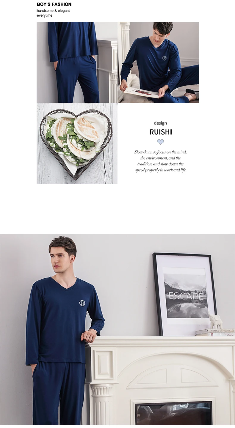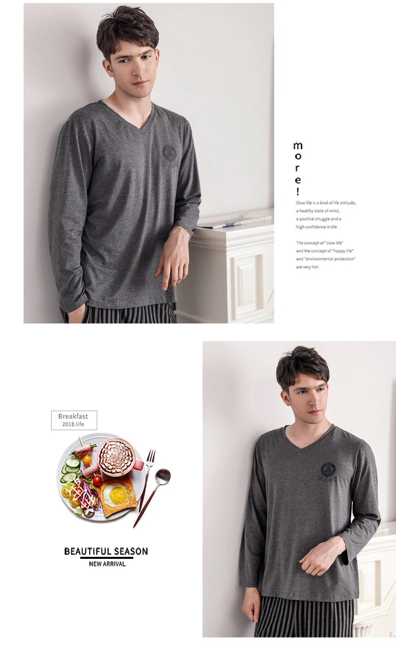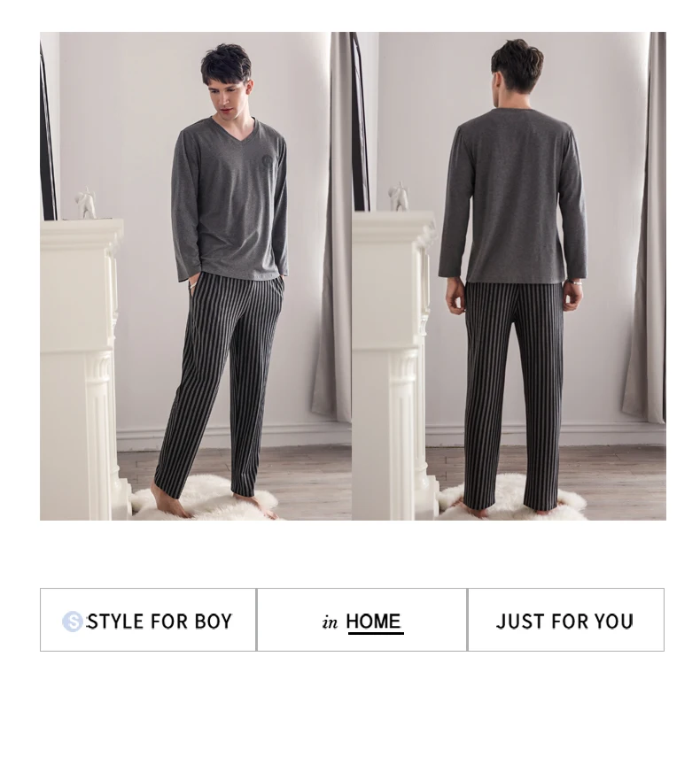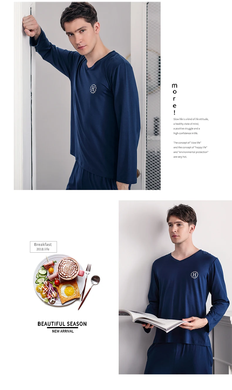 Pajamas Sleeping Suits for Men Fashion Men Sleepwear Modal Classy Pijama Hombre Plain Grey Male Pyjamas Long Sleeves Pajamas Men
