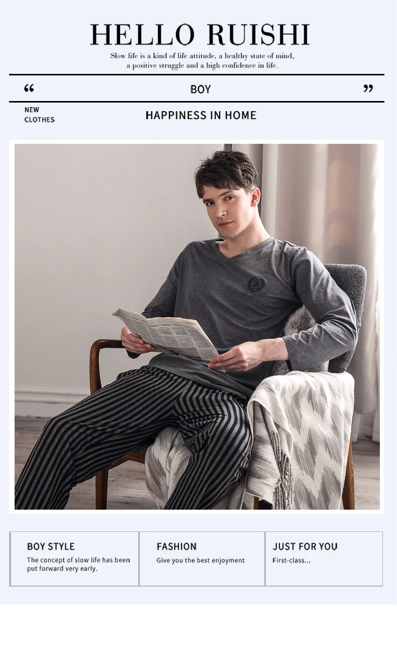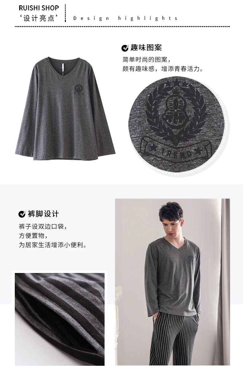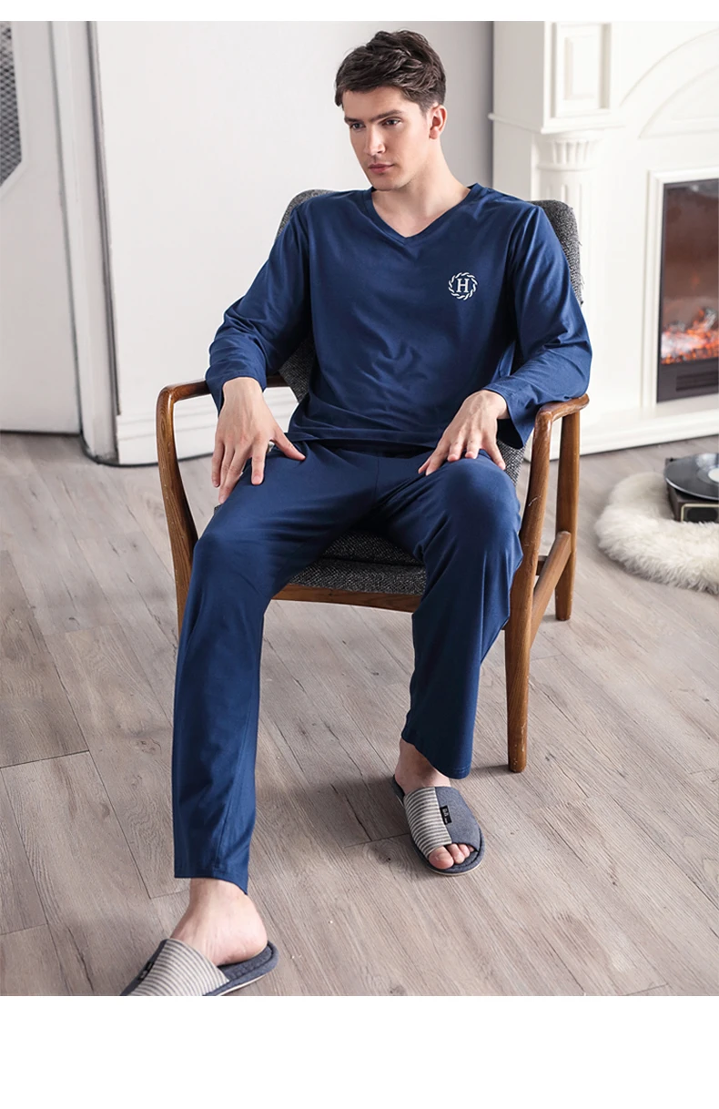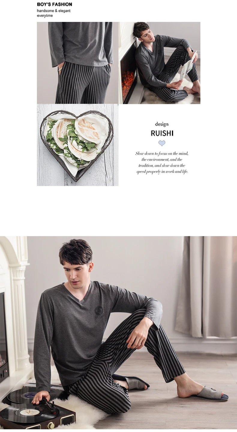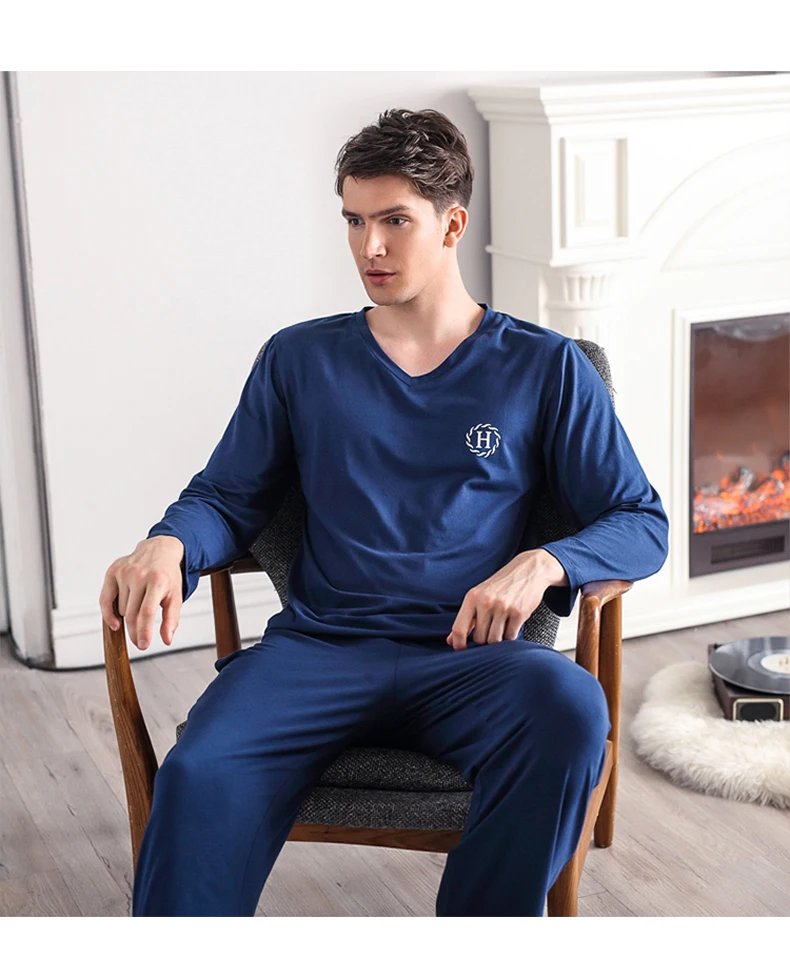 Pajamas Sleeping Suits for Men Fashion Men Sleepwear Modal Classy Pijama Hombre Plain Grey Male Pyjamas Long Sleeves Pajamas Men