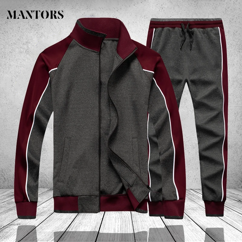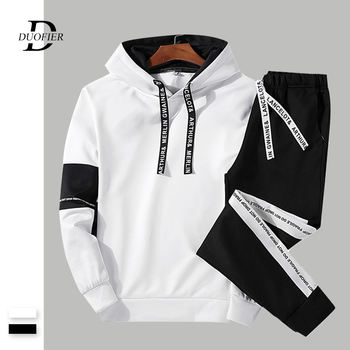 Patchwork Men Tracksuit Winter Spring 2 PCS Fleece Sweatshirt Jackets Pants Mens Track Suit Set Gym Joggers Sportswear Suit Male
