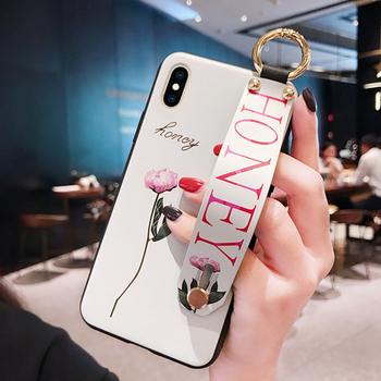 For iPhone 11 8 7 Plus XR X 11 Pro XS MAX Fashion Flower Lanyard Loop Stand Phone Case For iPhone SE/8/7 6 Plus soft TPU Cover