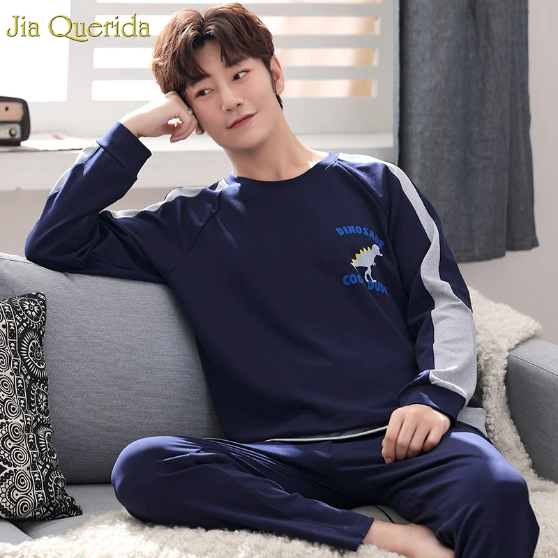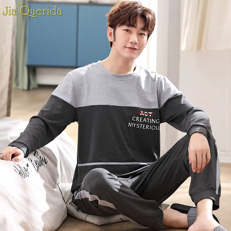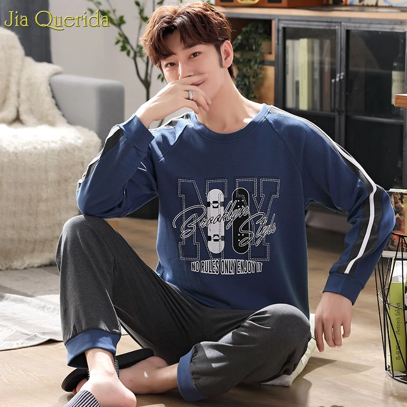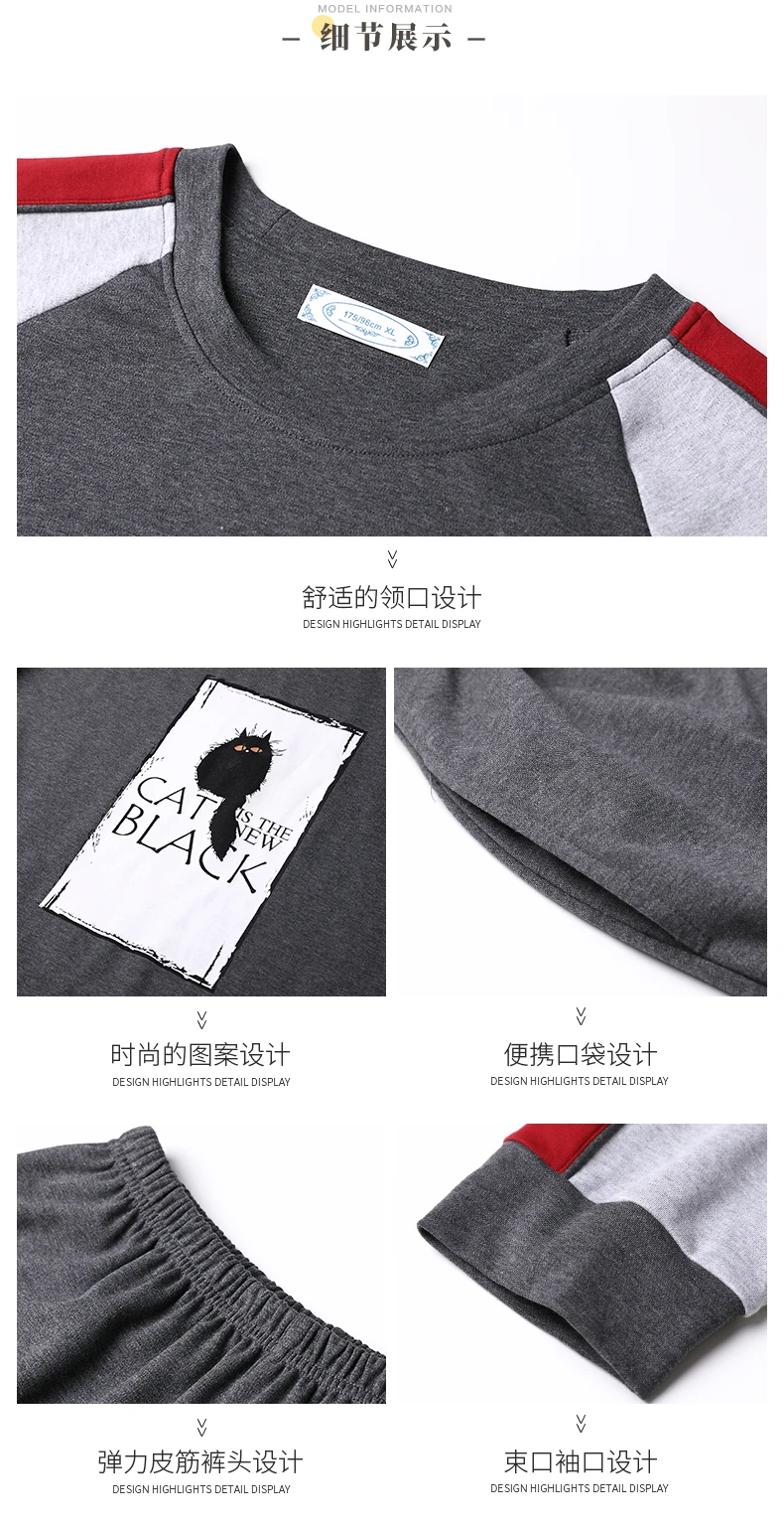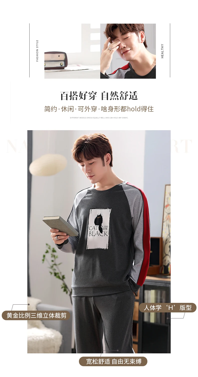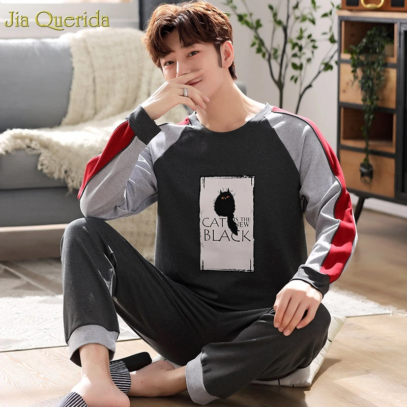 Pijama Man Set 100% Cotton Men Sleepwear Big Size Pajamas 3xl 4xl 5xl Sporty Style Men Pijama Black Cat Printing Mens Home Wear