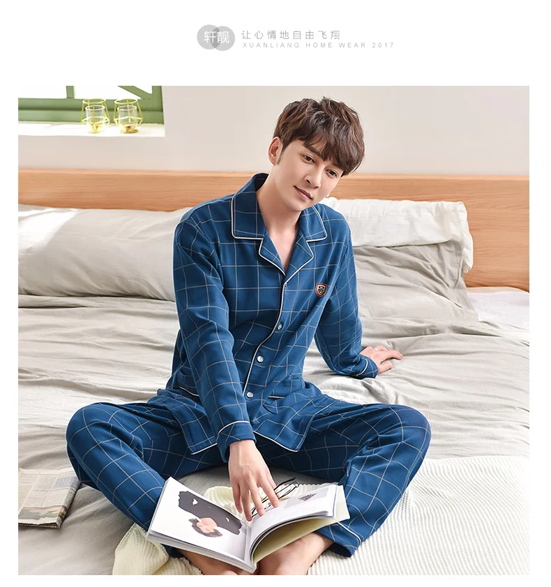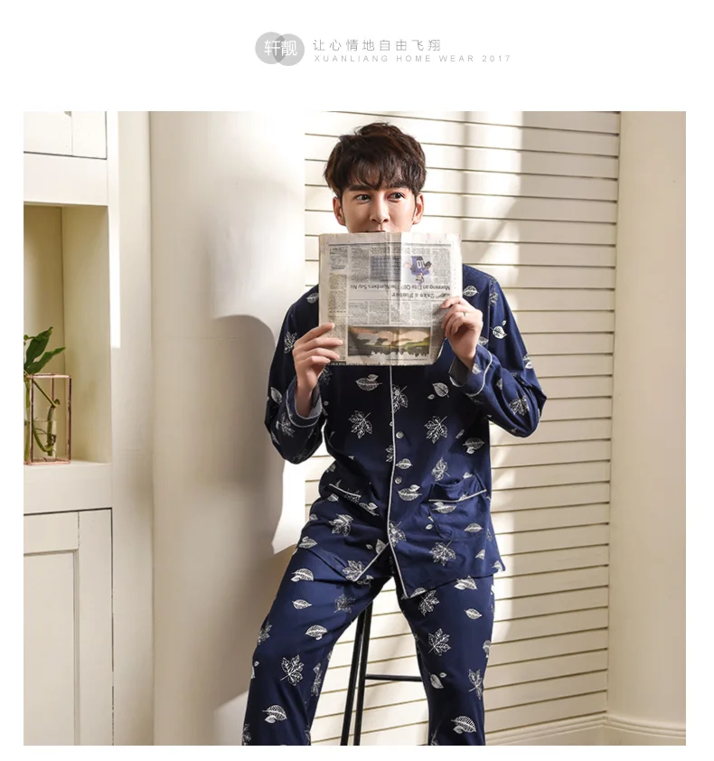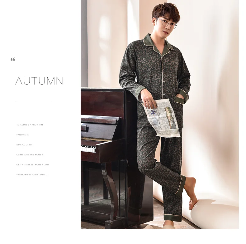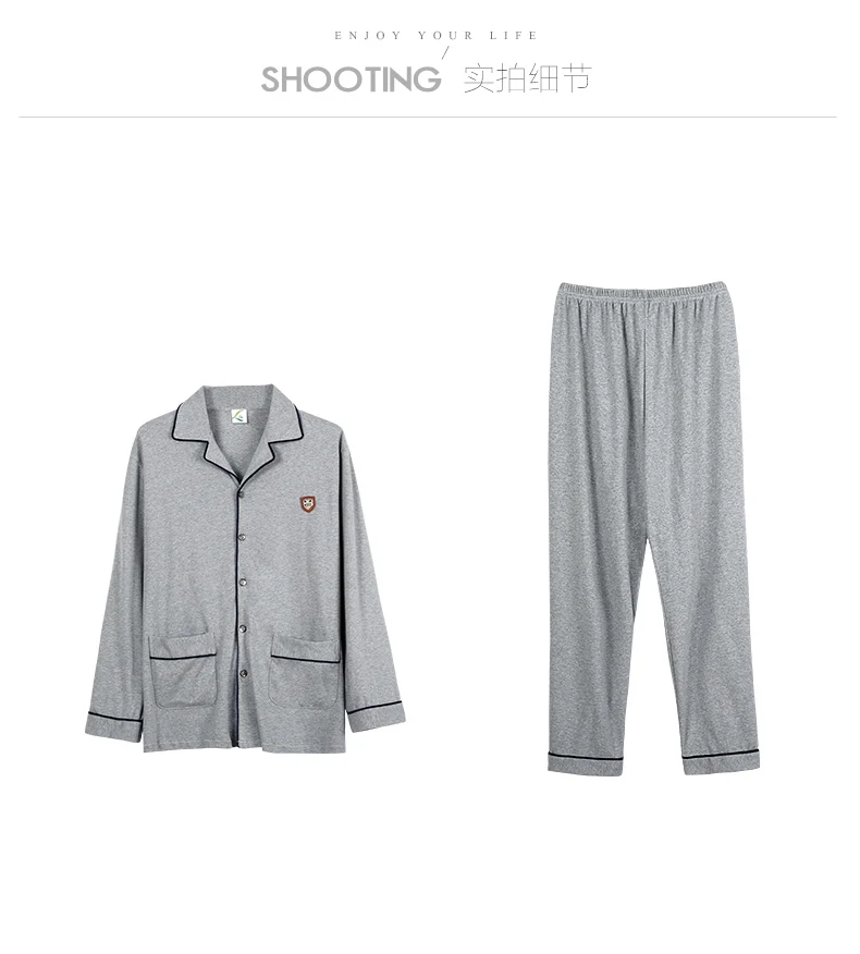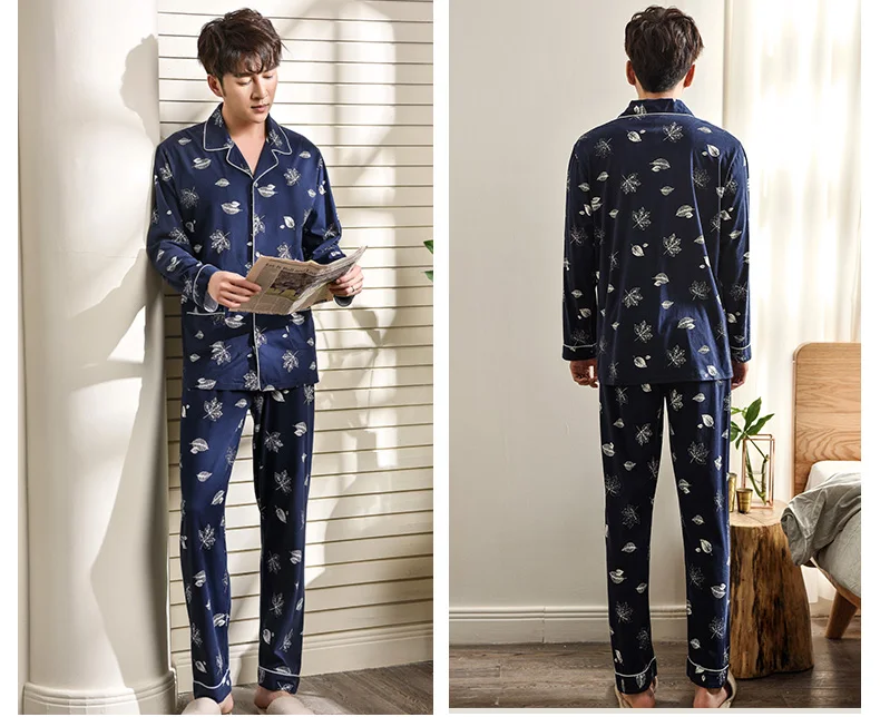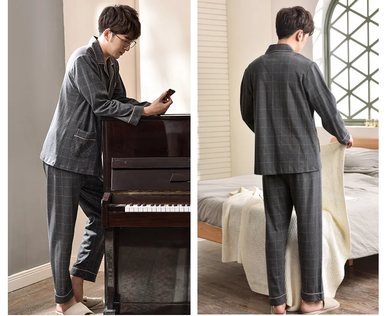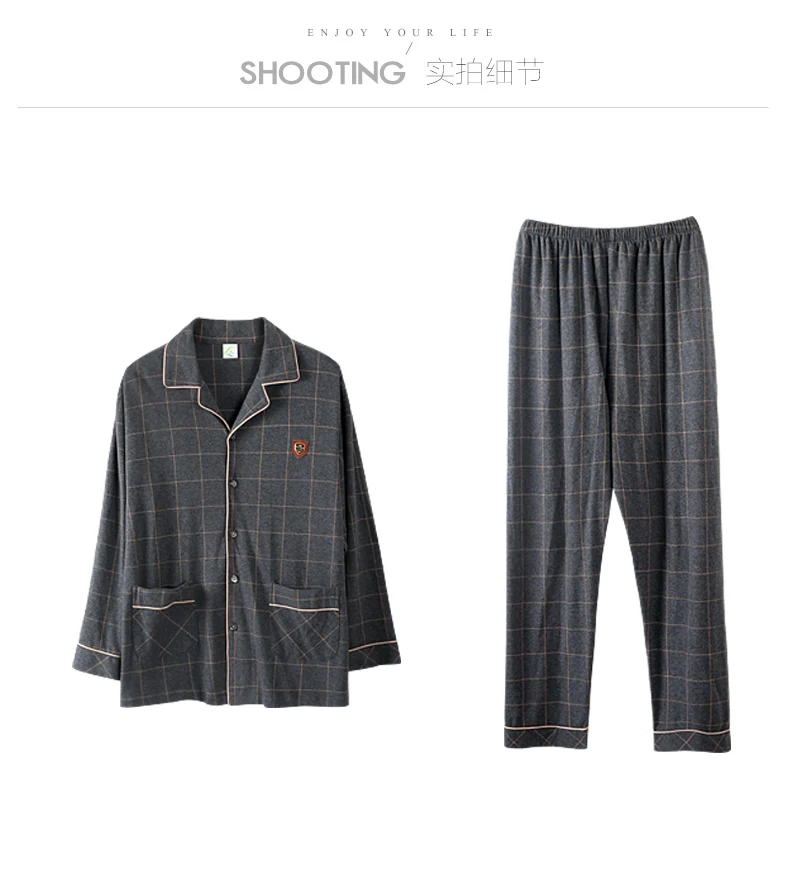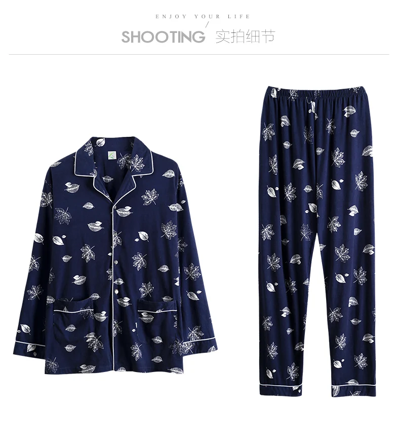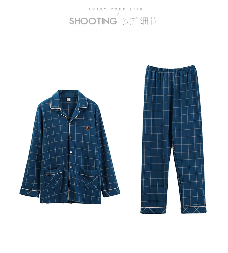 Pjs Male New 100% Cotton Mens Sleepwear Pyjama Homme Pajamas Men Pajama Set Lapel Cardigan Pijama 2 Pcs Long Sleeves Home Wear