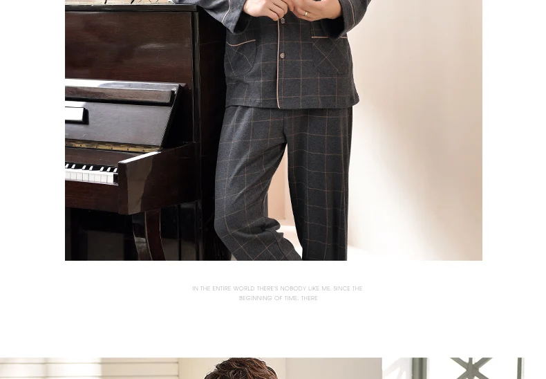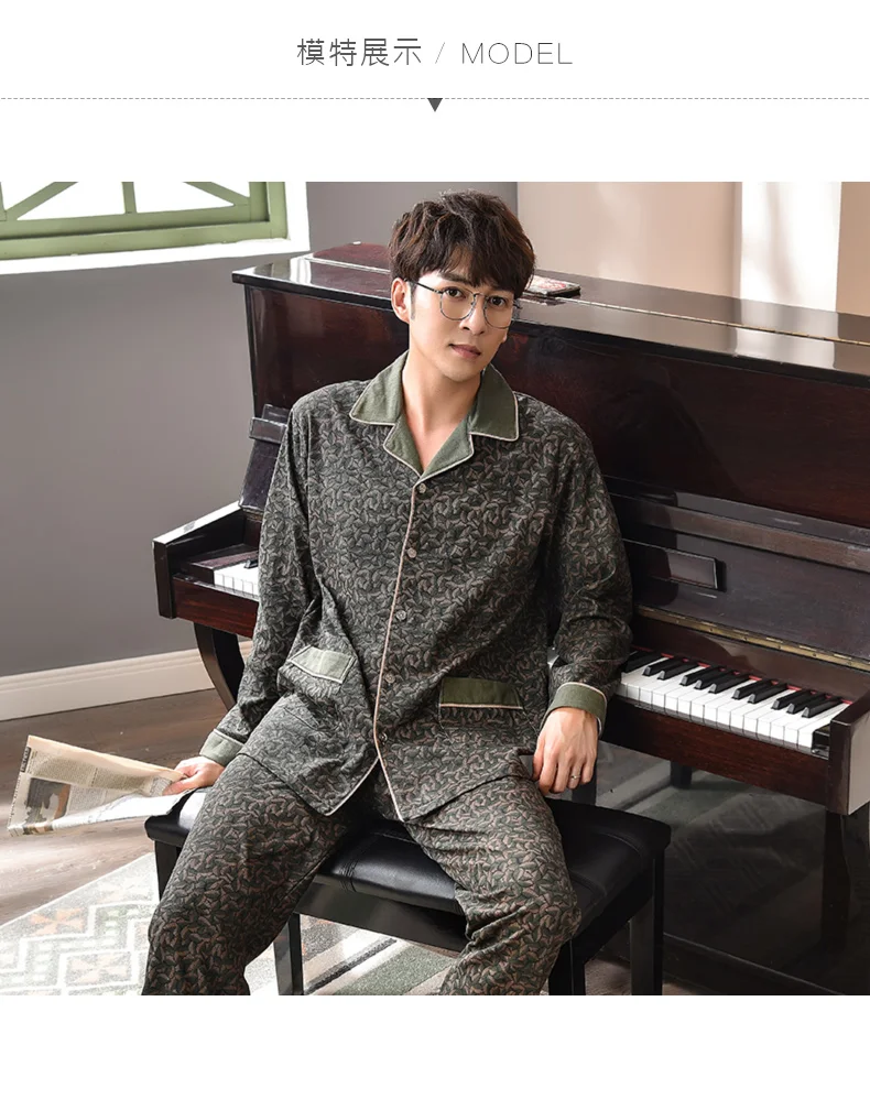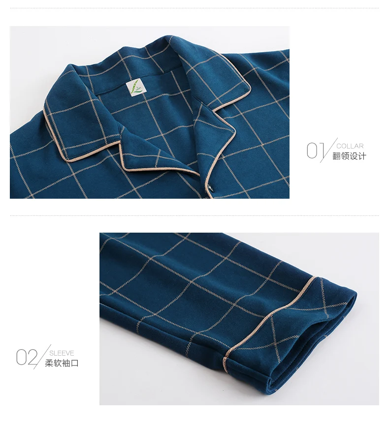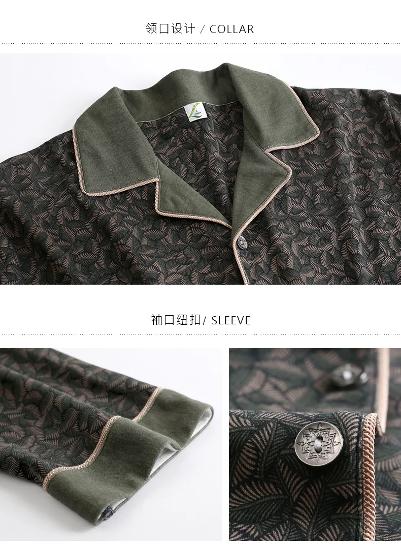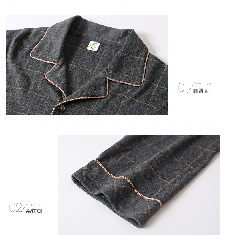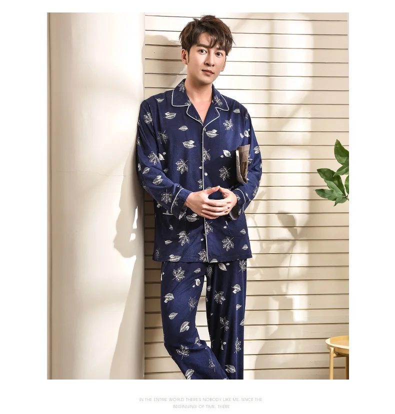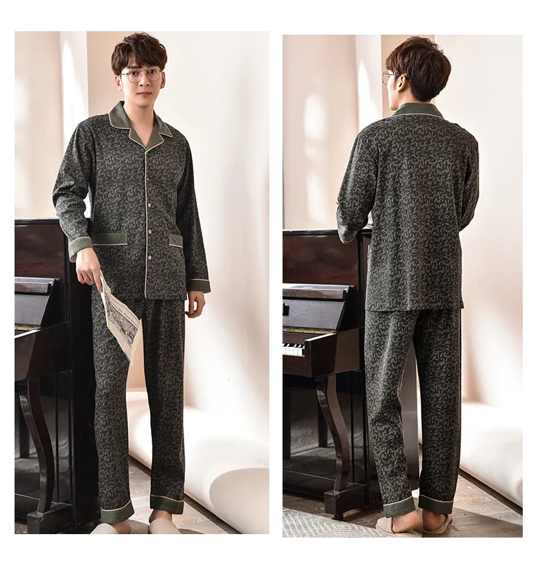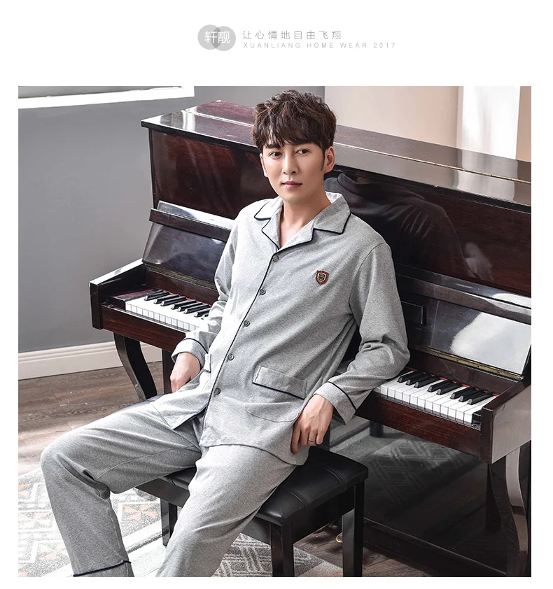 Pjs Male New 100% Cotton Mens Sleepwear Pyjama Homme Pajamas Men Pajama Set Lapel Cardigan Pijama 2 Pcs Long Sleeves Home Wear