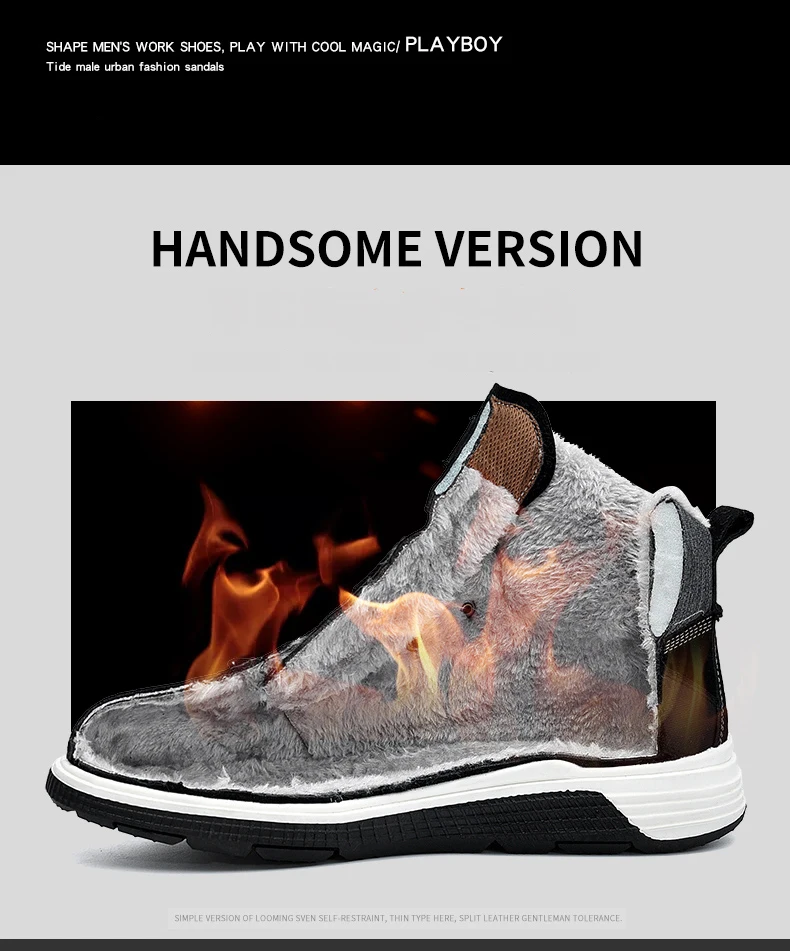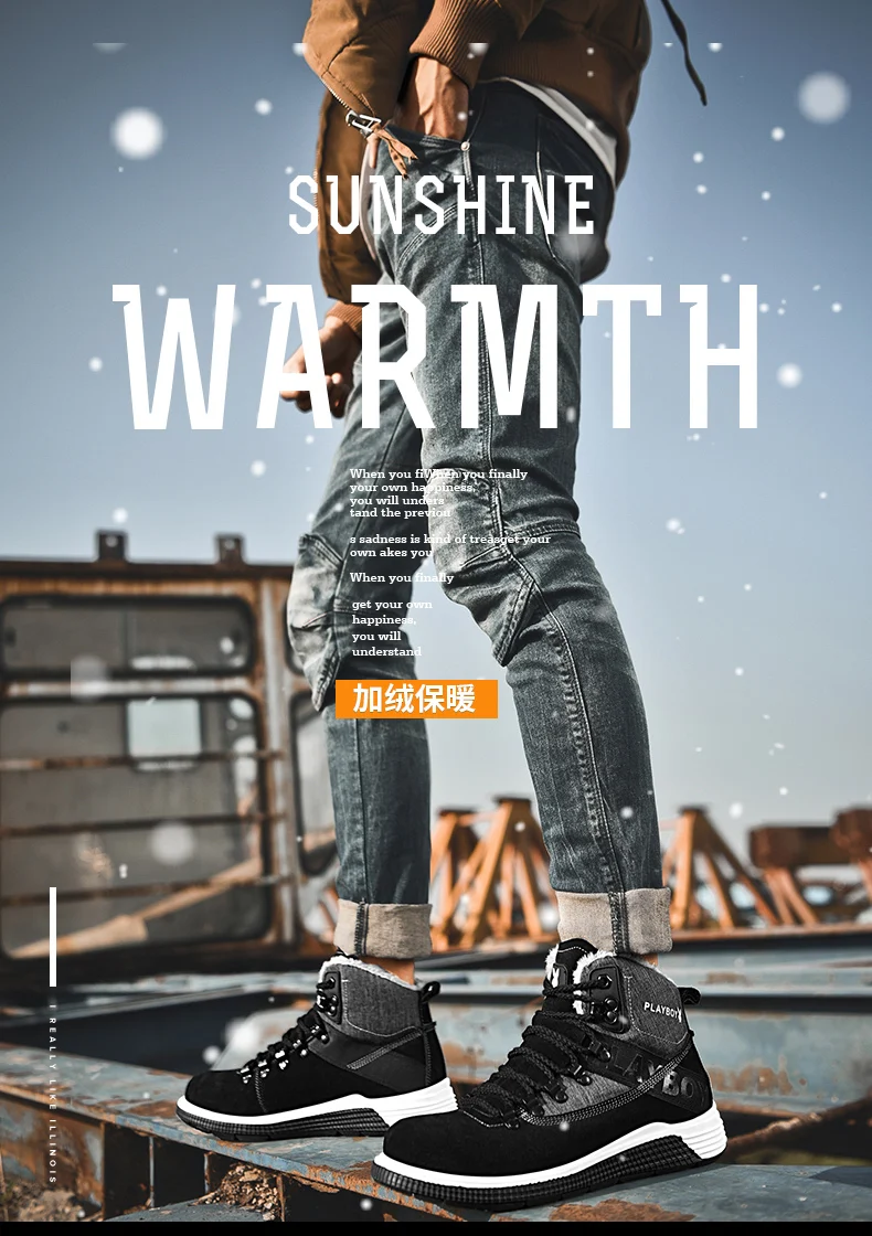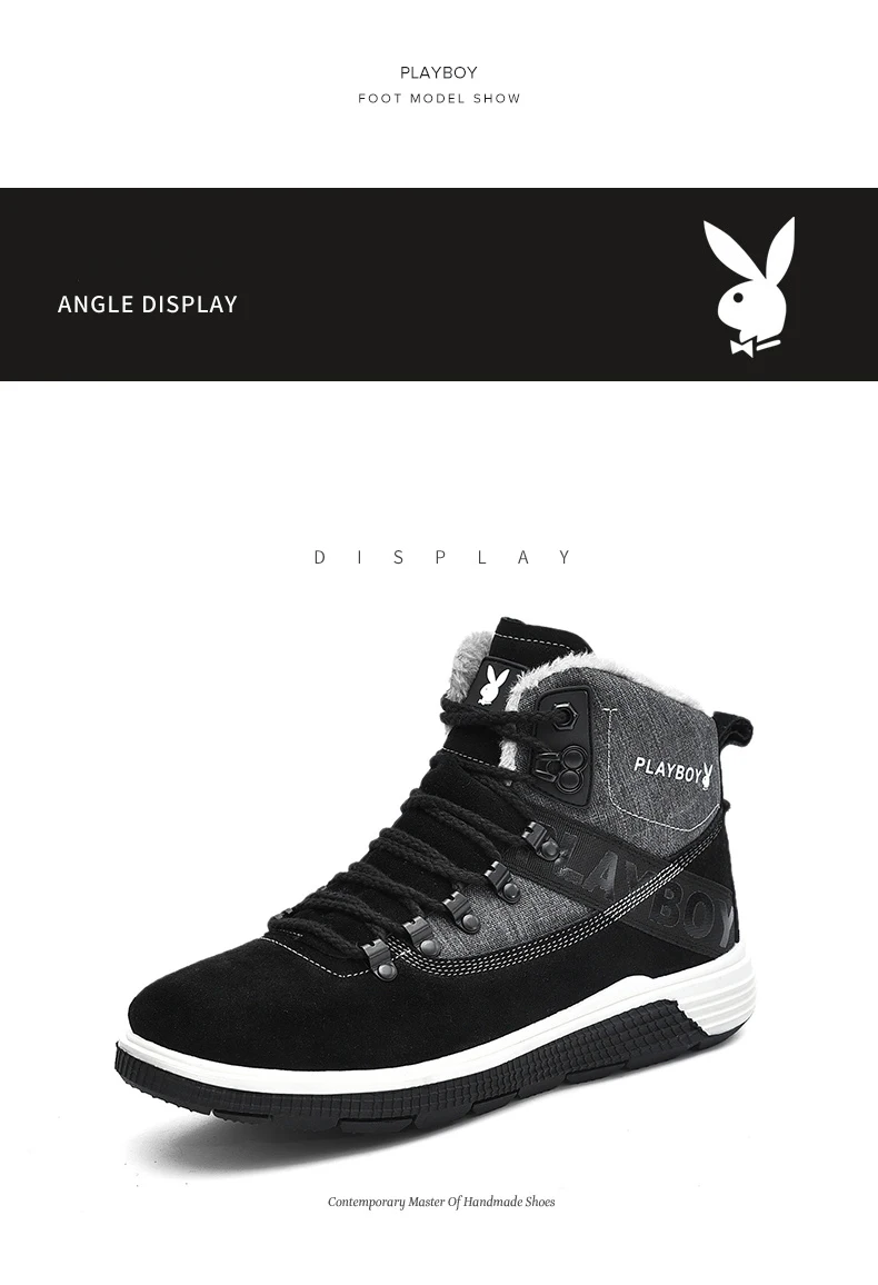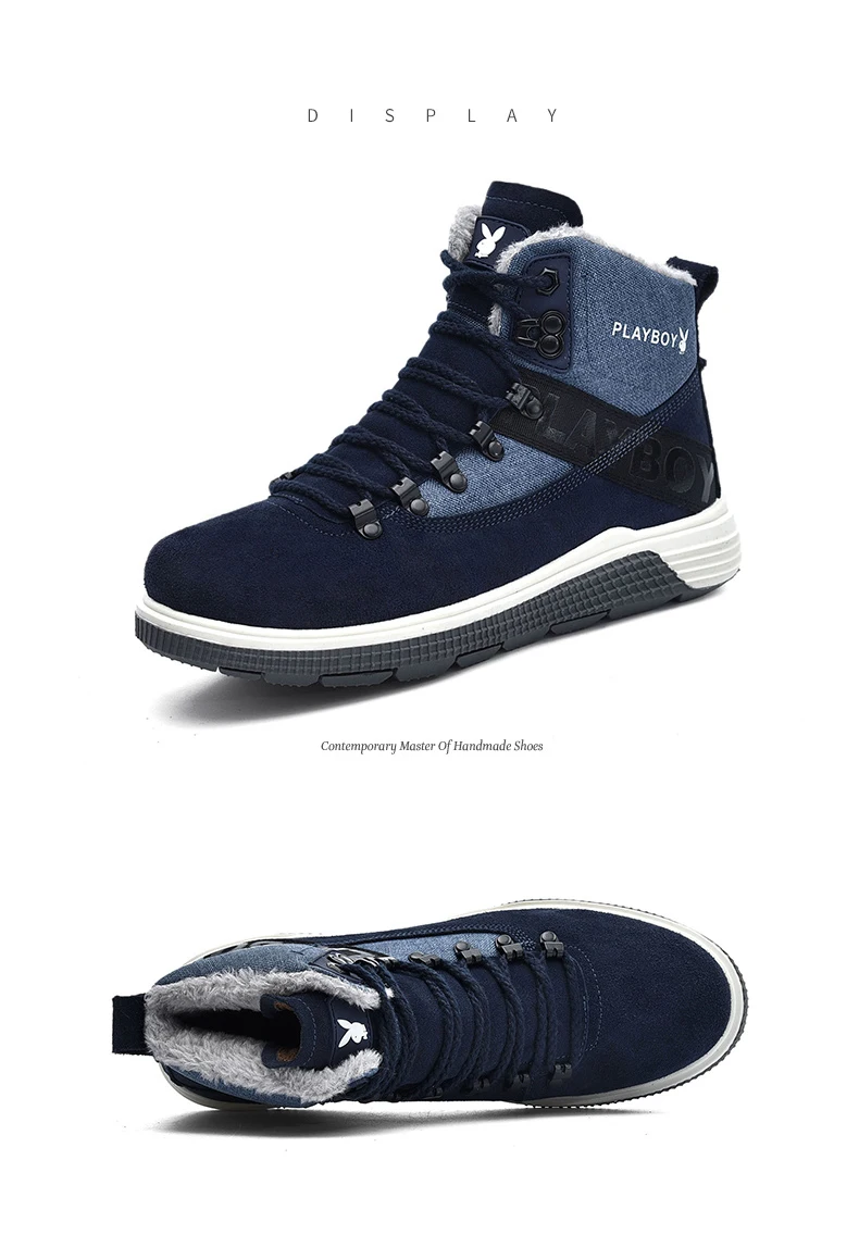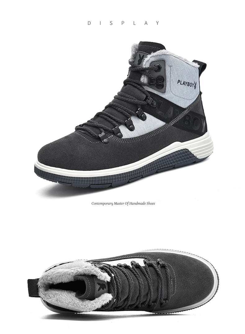 PLAYBOY New Men Boots Winter With Warm Snow Boots Men Winter Boots Work Shoes Men Footwear Fashion TPR Ankle Shoes DS87271