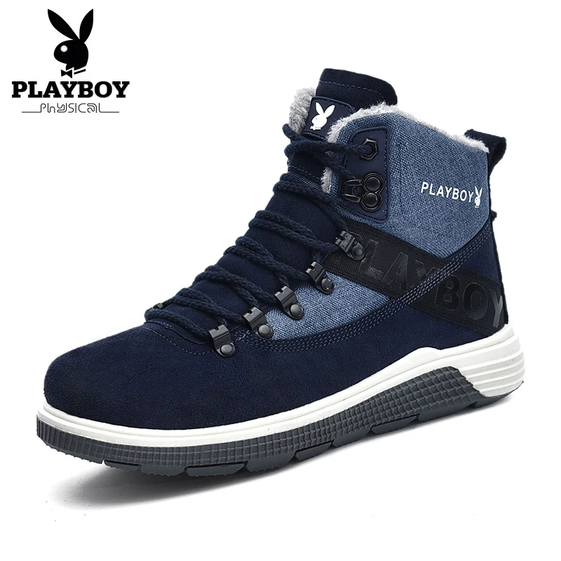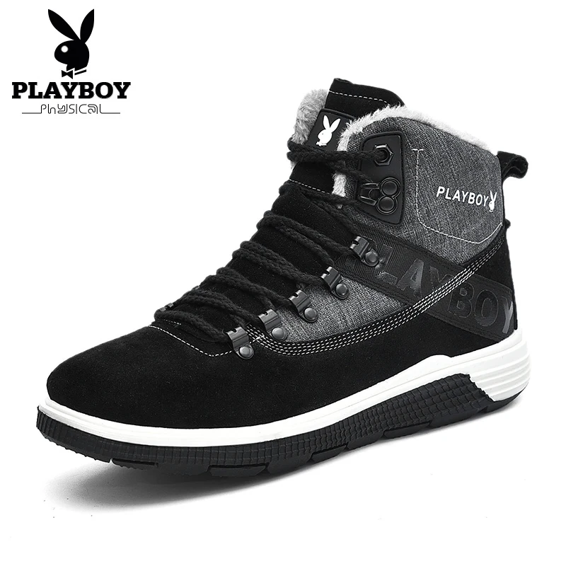 PLAYBOY New Men Boots Winter With Warm Snow Boots Men Winter Boots Work Shoes Men Footwear Fashion TPR Ankle Shoes DS87271