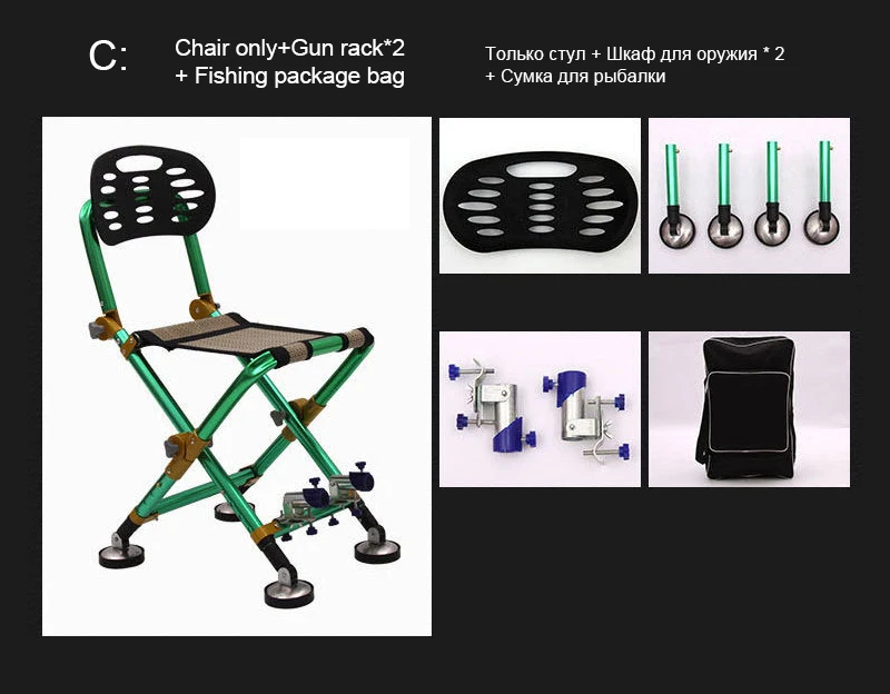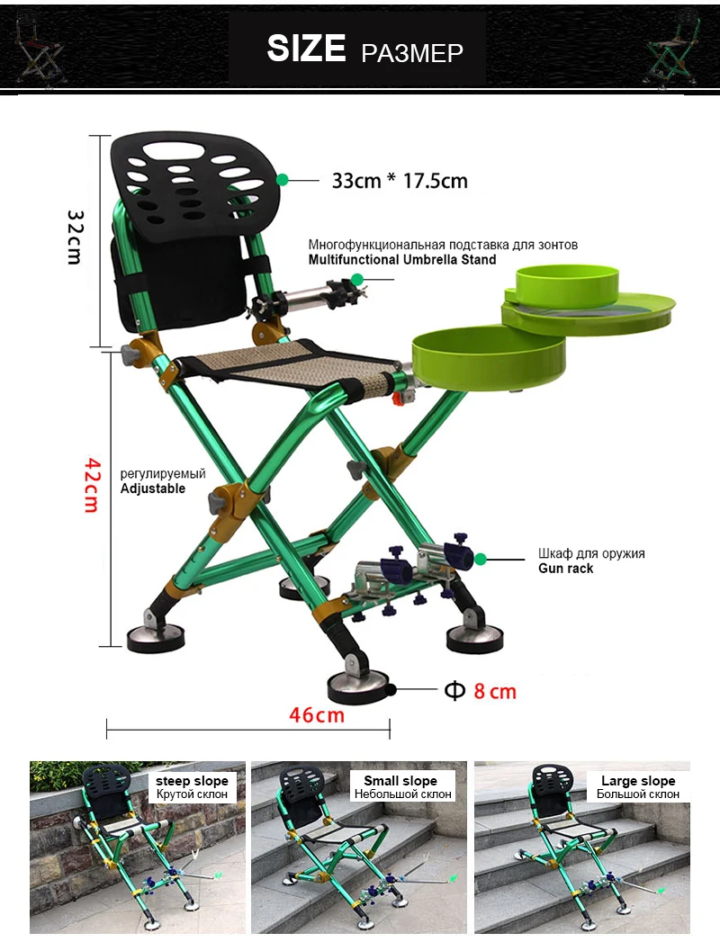 Suitable for all kinds of terrain, can adjust the Angle of the fishing chair with the different slope of the wild fishing.