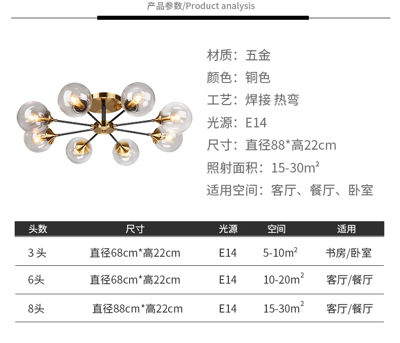 Postmodern LED lights Glass ball lamps Nordic hanging lights bedroom lighting fixtures living room chandelier ceiling