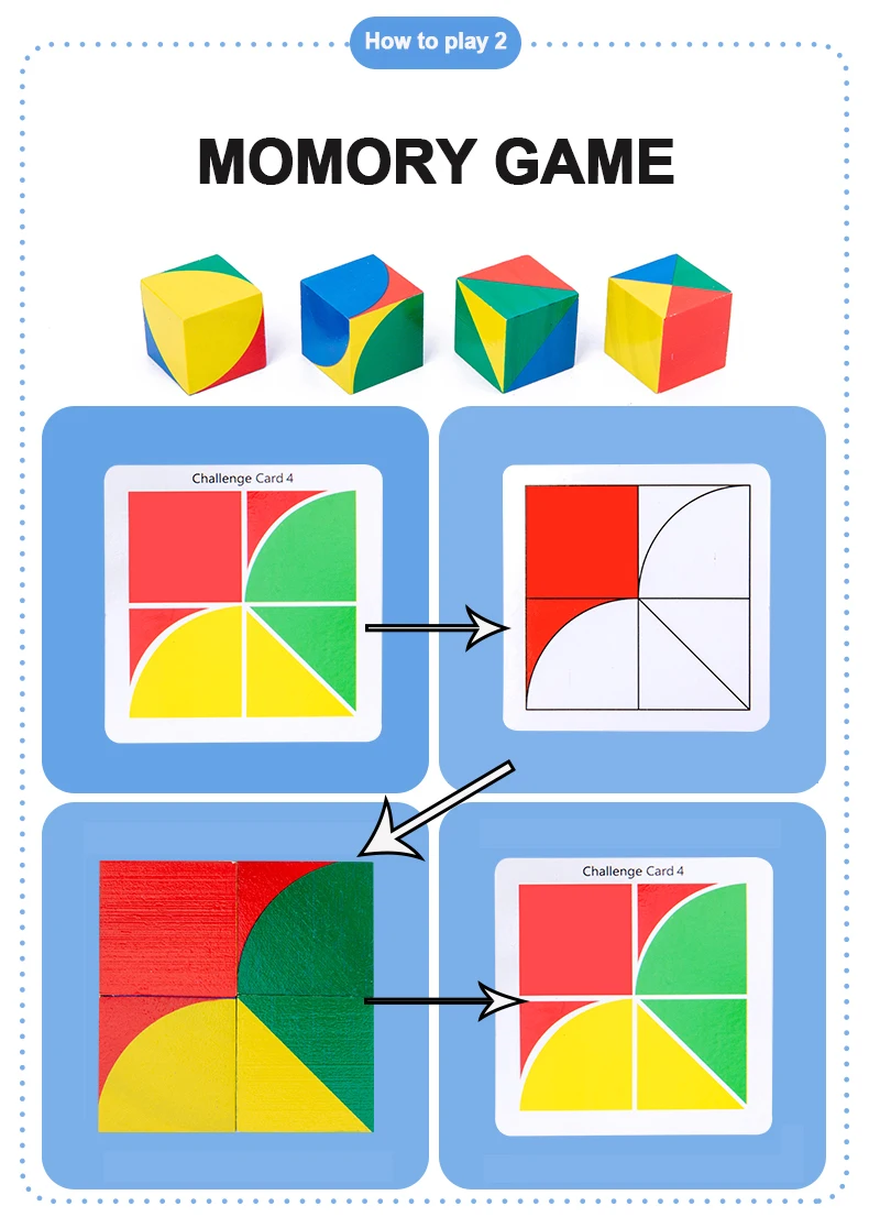 Now players have 10 seconds to remember the patterns on their cards Then turn card to the back and use your colored squares to complete the challenge coin pattern and win the challenge card according to the tips on the back of the card .