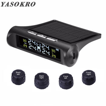 YASOKRO Car TPMS Tire Pressure Alarm Monitor System Solar Charging LCD Display 4 External Sensor Temperature Sensor