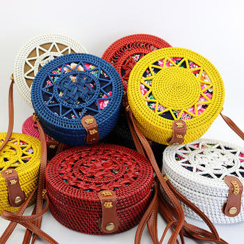 Fashion New Round Beach Rattan Bag Women Summer Colorful Handmade Woven Straw Bags Bohemia Beach Shoulder Bag Circle Handbag